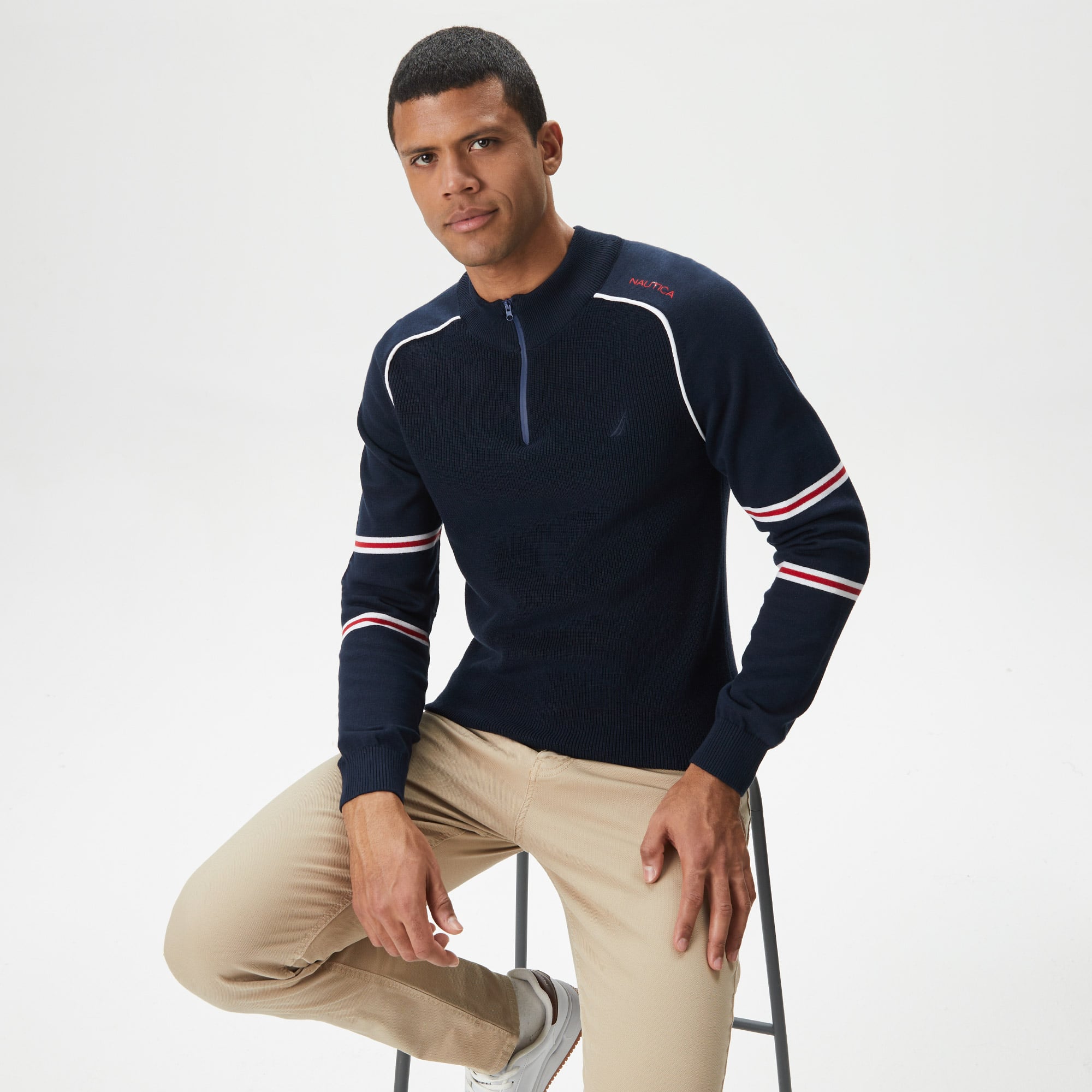 Nautica Erkek Lacivert Standart Fit Dik Yakalı Triko