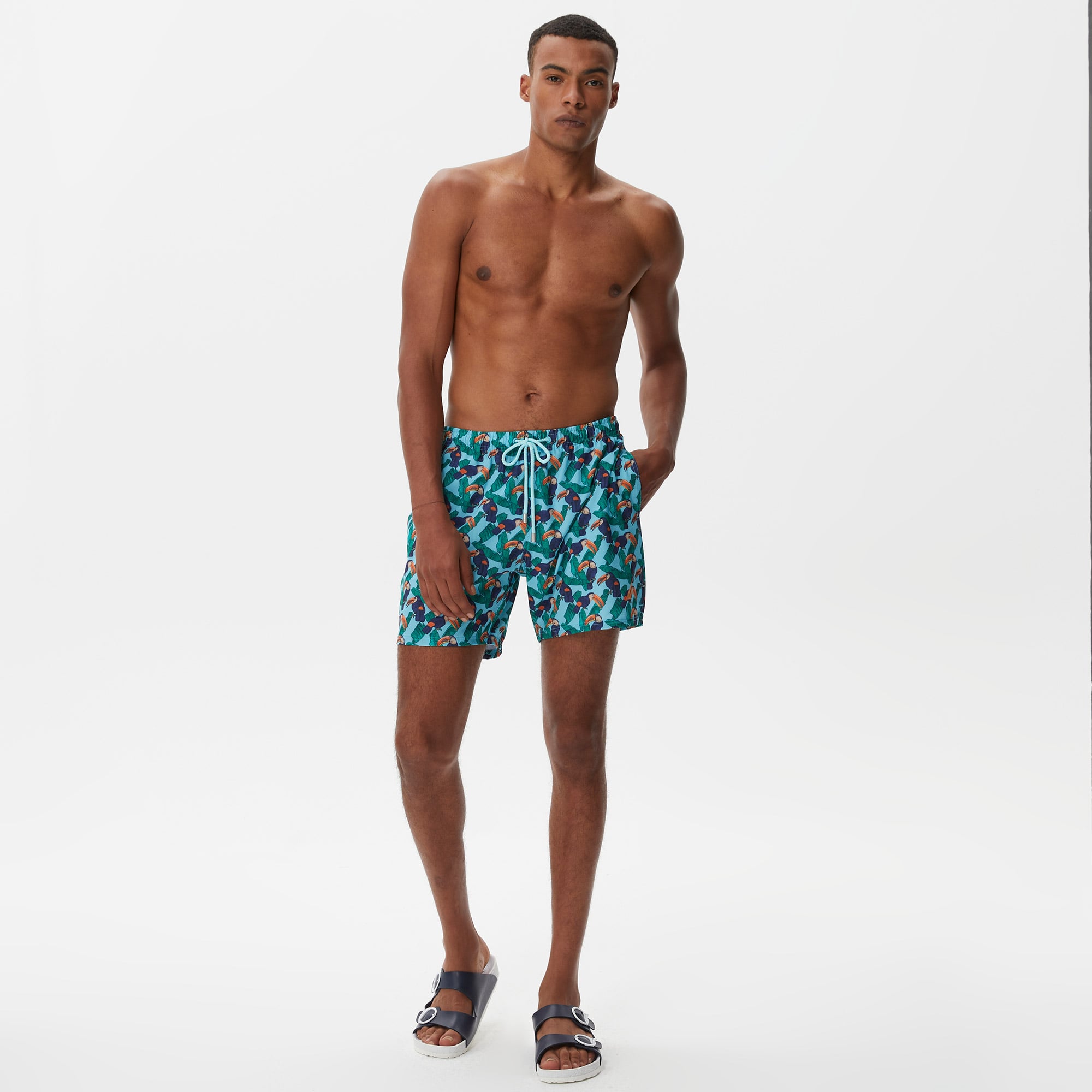 Nautica erkek mayo şortu tukan baskılı,lastikli bel bağlamalı, cepli tasarımı hafif ve hızlı koruyan mayo şortlar denizden ve havuzdan sonra konfor sağlıyor.