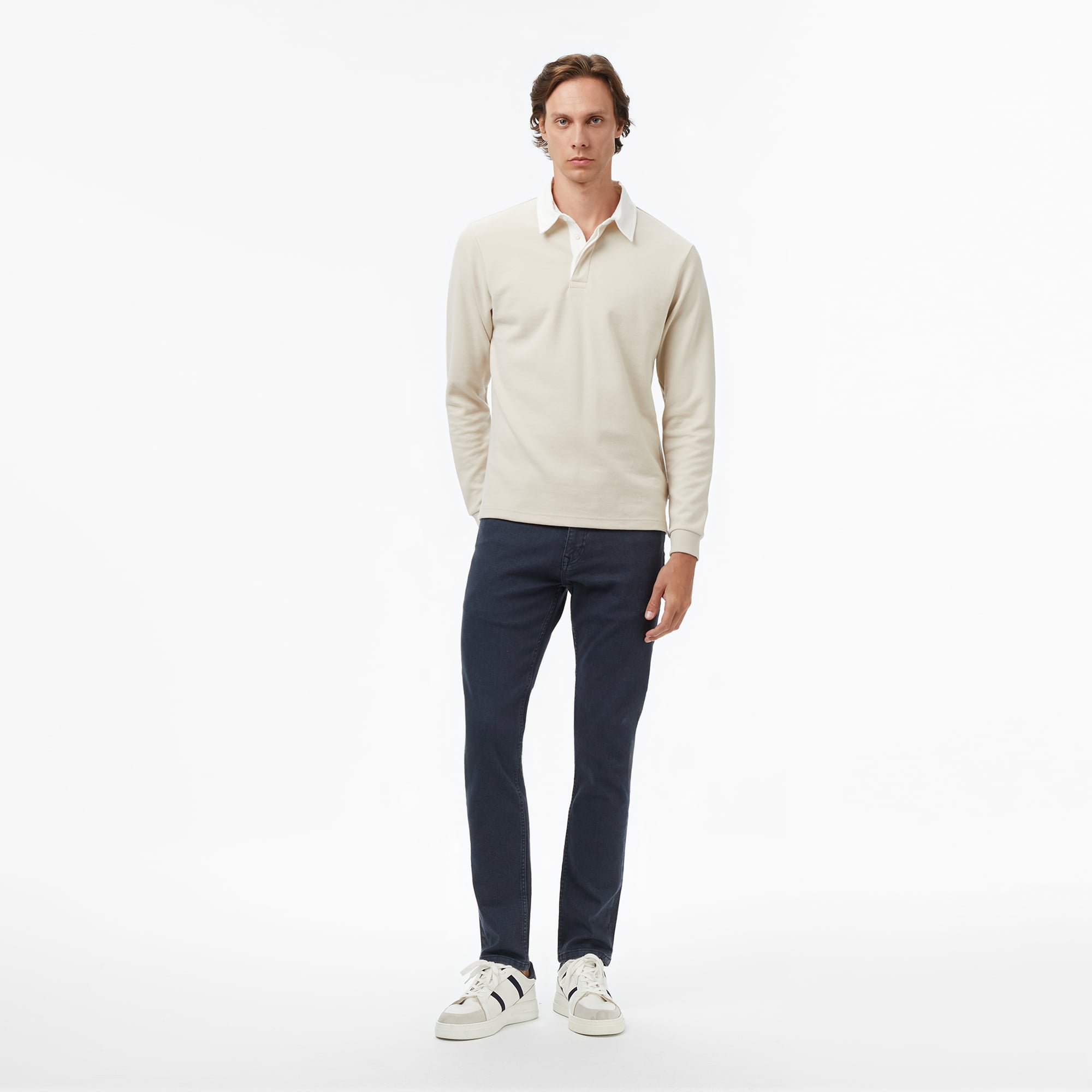 Esnek dokusuyla rahat hareket imkânı sunar, kemerli bel tasarımıyla şık ve modern bir görünüm kazandırır. Düz paça kesimi sayesinde hem günlük kombinlerde hem de daha klasik parçalarla kolayca uyum sağlar. Pamuklu yapısı tene yumuşak bir his verirken, küçük elastan katkısı gün boyu konfor sağlar.