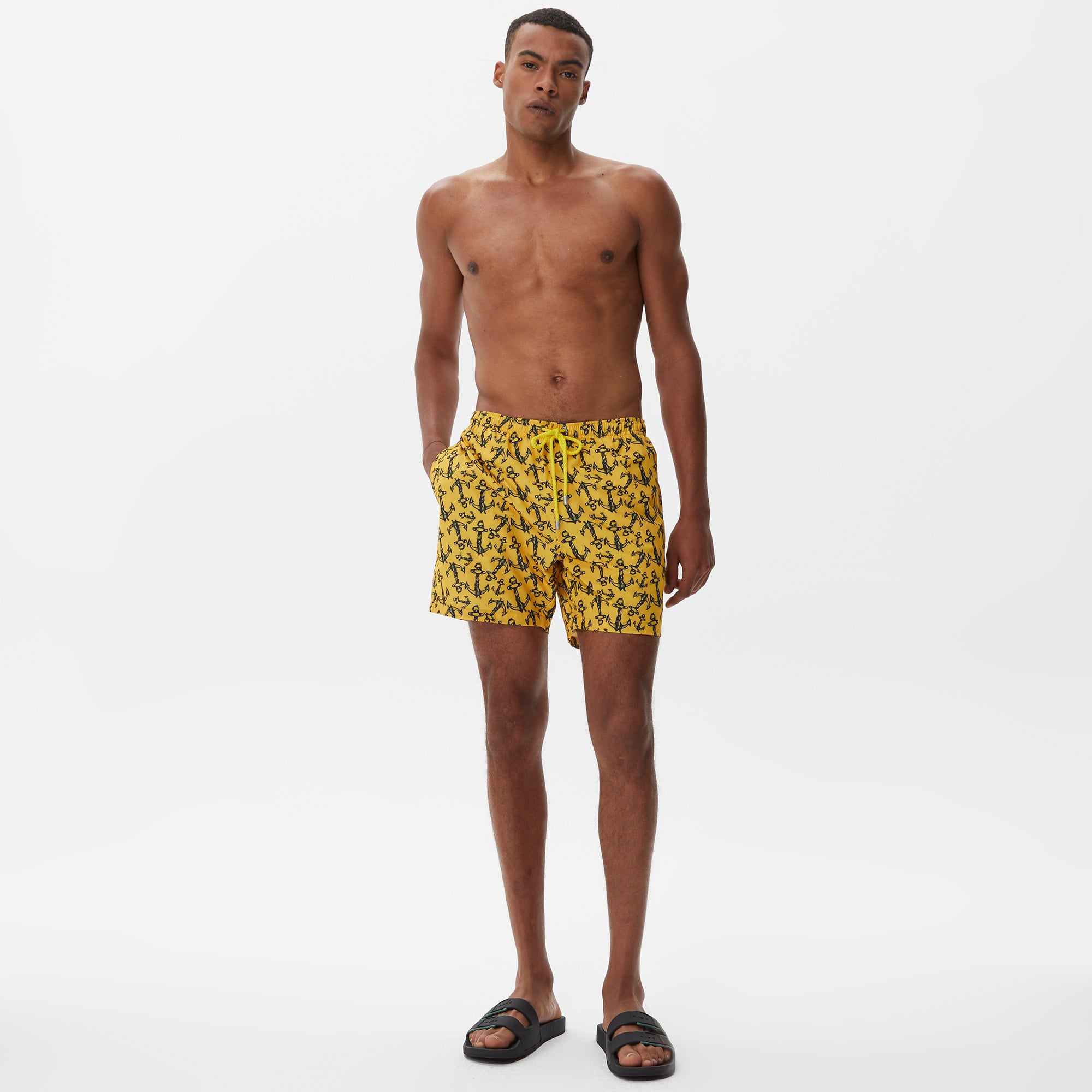Nautica Erkek Sarı Baskılı Deniz Şortu, plaj stilini konforla buluşturur. Hafif ve esnek yapısı sayesinde hareket özgürlüğü sunarken, hızlı kuruyan kumaşı gün boyu kuru kalmanı sağlar. Lastikli beli ile ideal uyum sunan model, arka cebindeki fonksiyonel detayıyla da öne çıkar. Deniz kenarında ya da havuz başında tarzını rahatlıkla tamamlayabileceğin bu şort, yaz boyunca vazgeçilmezlerinden olacak.