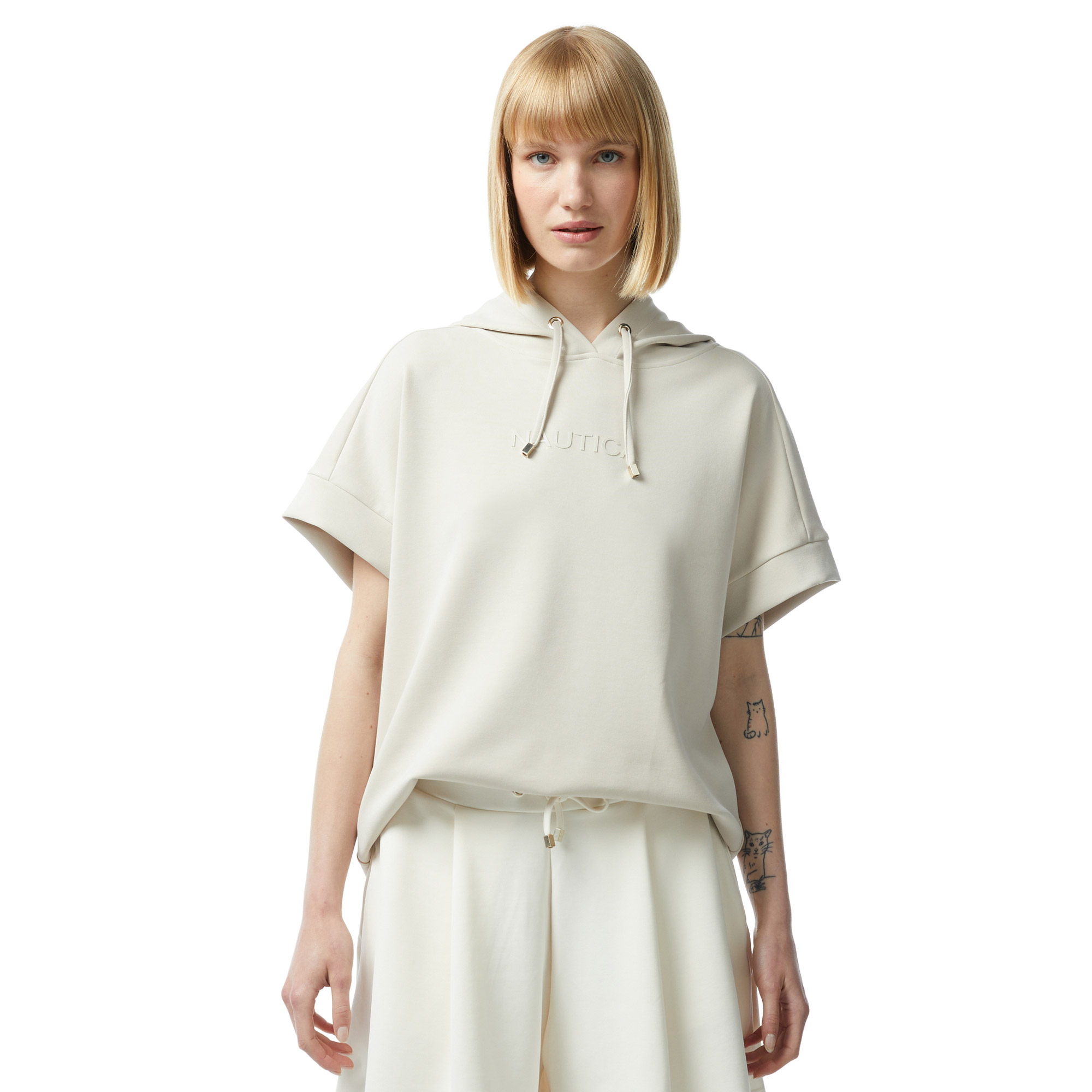 Nautica Kadın Beyaz Relaxed Fit Kısa Kollu Sweatshirt