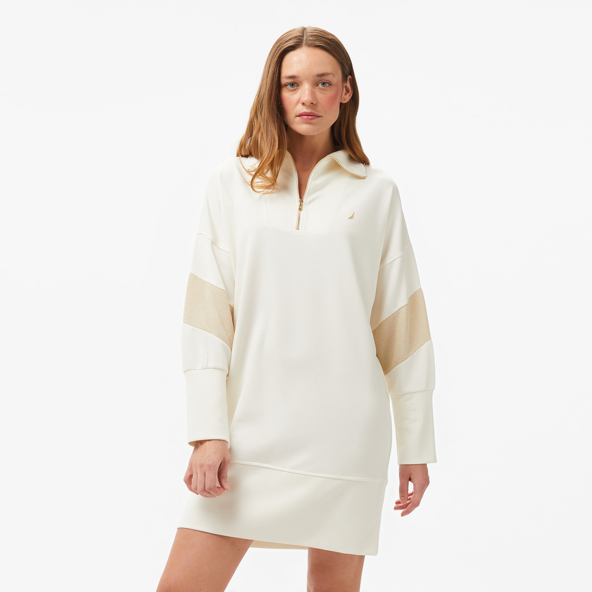 Nautica'nın yenilikçi tasarımıyla dikkat çeken elbise, dik yaka ve yarım fermuar detaylarıyla modern bir görünüm sunuyor. Kollarındaki gold sim detayları, zarif bir parıltı katarken, göğüs kısmındaki Nautica logosu sofistike bir dokunuş ekliyor. Farklı renk seçenekleriyle, bu elbise her tarza ve her ruh haline uyum sağlarken tarzınızı ve şıklığınızı bu elbiseyle her zaman bir üst seviyeye taşıyacaksınız!