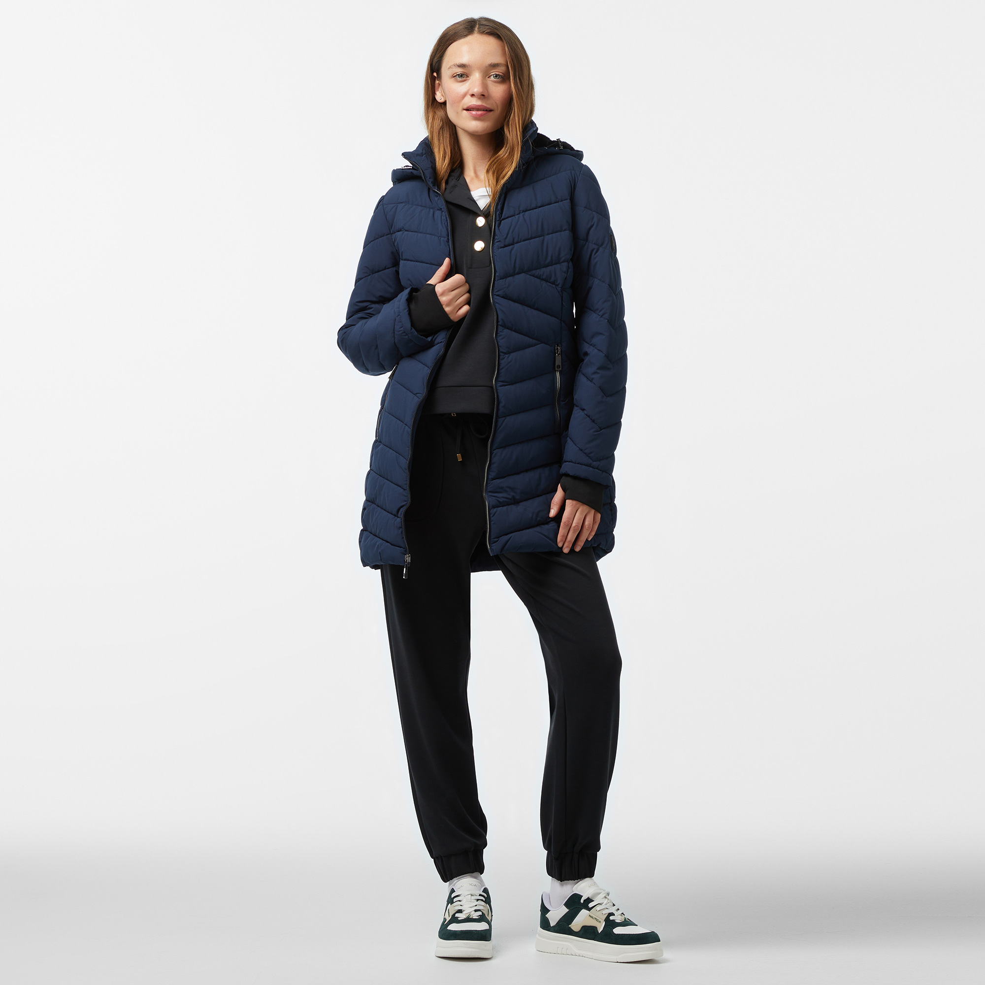 Nautica'nın bu şişme montu, günlük şıklık ve konforu bir arada sunuyor. Kapüşon, dik yaka detayları ve uzun kesimiyle soğuk havalara meydan okurken, zarif tasarımıyla tarzınızı koruyun. Klasik çizgilerle zamansız bir şıklık sizinle.