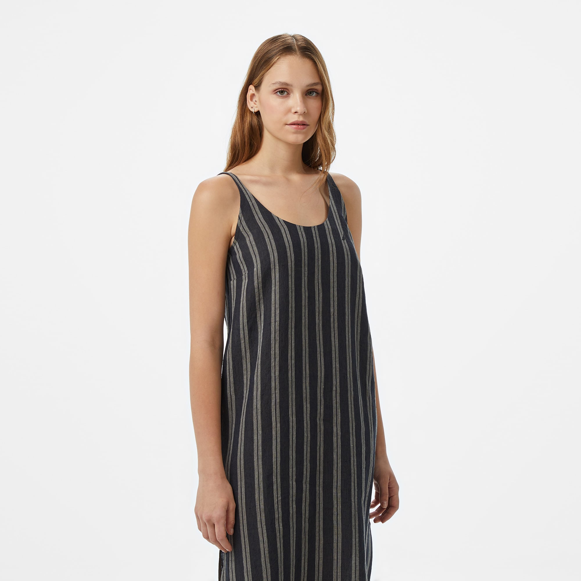 Nautica'nın ikonik boyuna çizgili tasarımı, günlük rahatlığı ön plana çıkarıyor. Uzun boy kesimi, v yaka tasarımı ve ince askılı yapısıyla konforlu bir kullanım sunarken, göğüste yer alan J Class logo detayıyla modern ve sofistike bir görünüm kazandırıyor. Günlük şıklığınızı tamamlayacak bu elbiseyle stilinizi öne çıkarın!