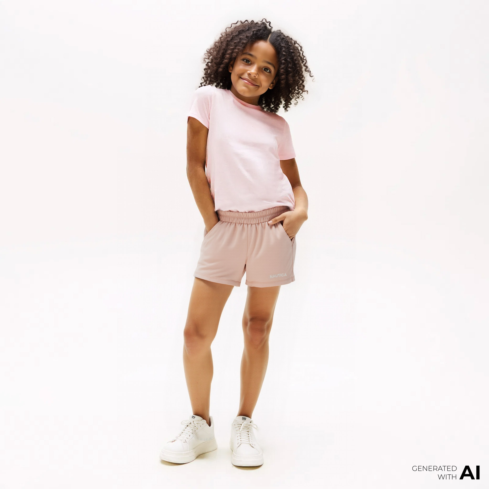 Nautica kız çocuk şortları, esnek kumaşı basic kalıbı, beli bağlamalı renk seçenekleri ile minik kızlar için rahat ve yumuşak bir alternatif sunuyor.