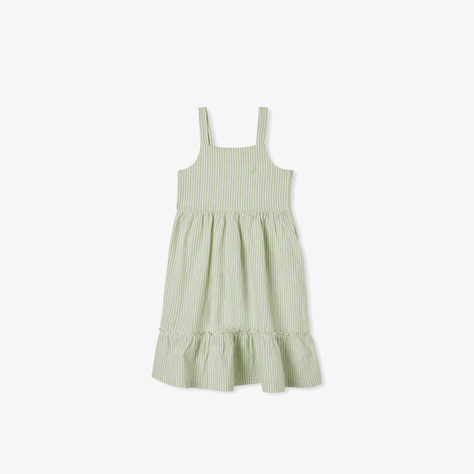Nautica Kız Çocuk Yeşil Askılı Çizgili Keten Elbise
