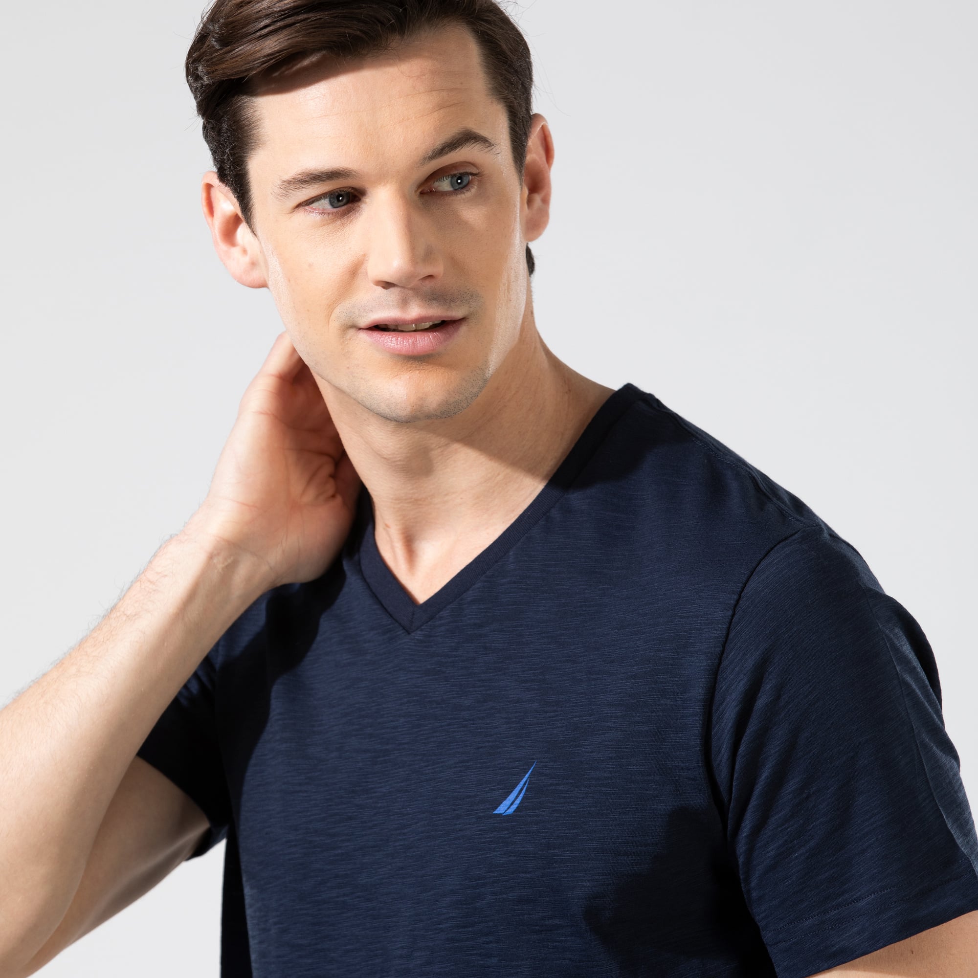 Birçok farklı renk seçeneği ile sade giyinmeyi seven tarz sahibi erkeklerin beğenisini kazanan kısa kollu v yaka t-shirt, %100 pamuklu kumaş yapısıyla hafif ve konforlu hissetmenize olanak sağlıyor. Flamlı kumaş yapısı ile stilinize bambaşka bir dokunuş yapan model, slim fit kalıbı ile vücudunuza tam oturarak rahat hareket özgürlüğü sunuyor.
