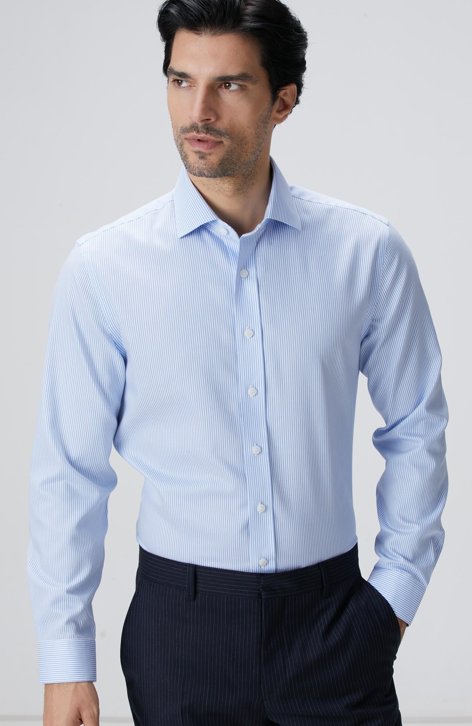 %100 Pamuk;Slim Fit; Yarım İtalyan Yaka; Uzun Kol Gömlek; Çizgi Desenli; Cepsiz; Non-Iron;