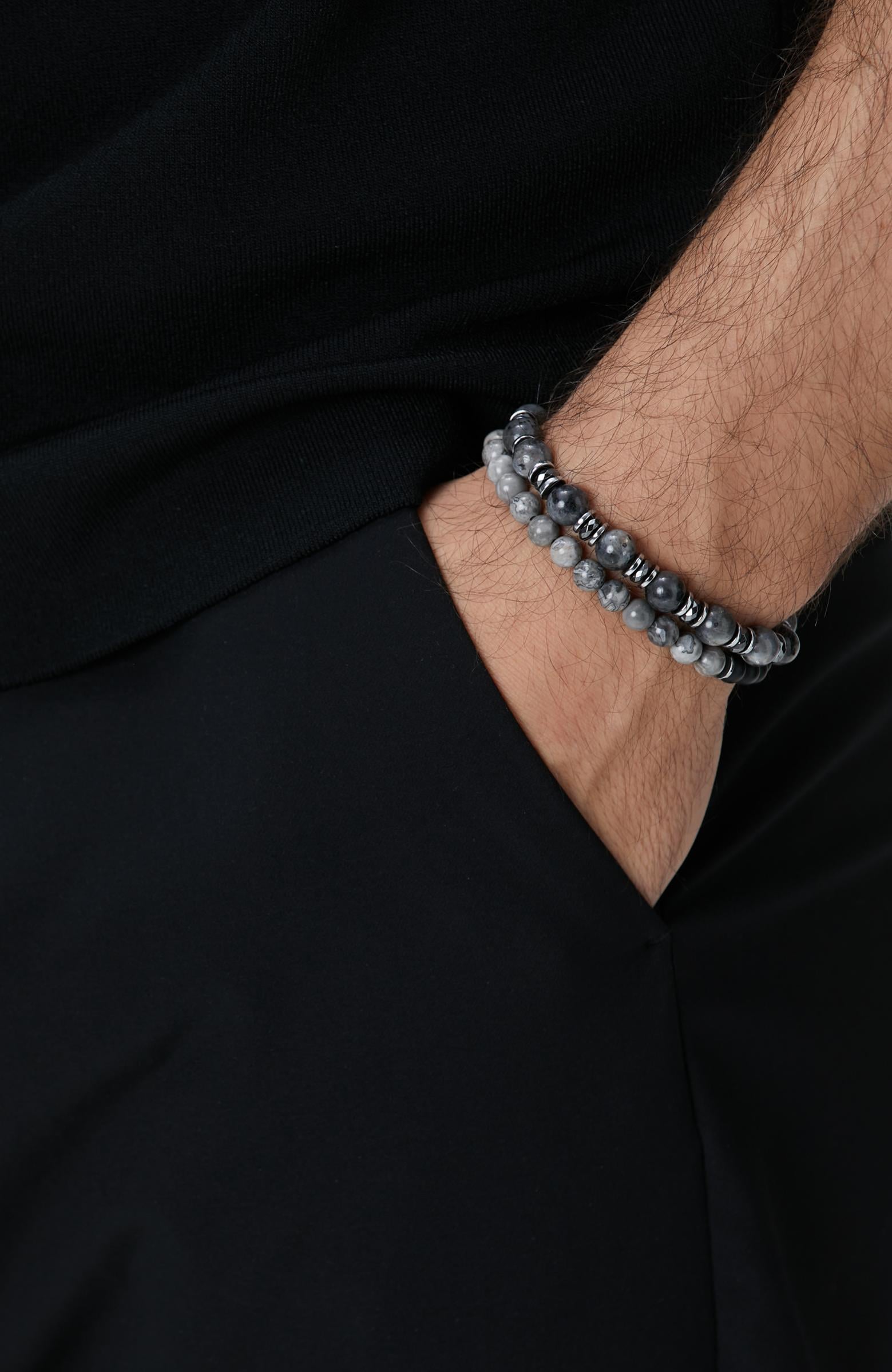 %100 Taş;Antrasit Erkek Bileklik;