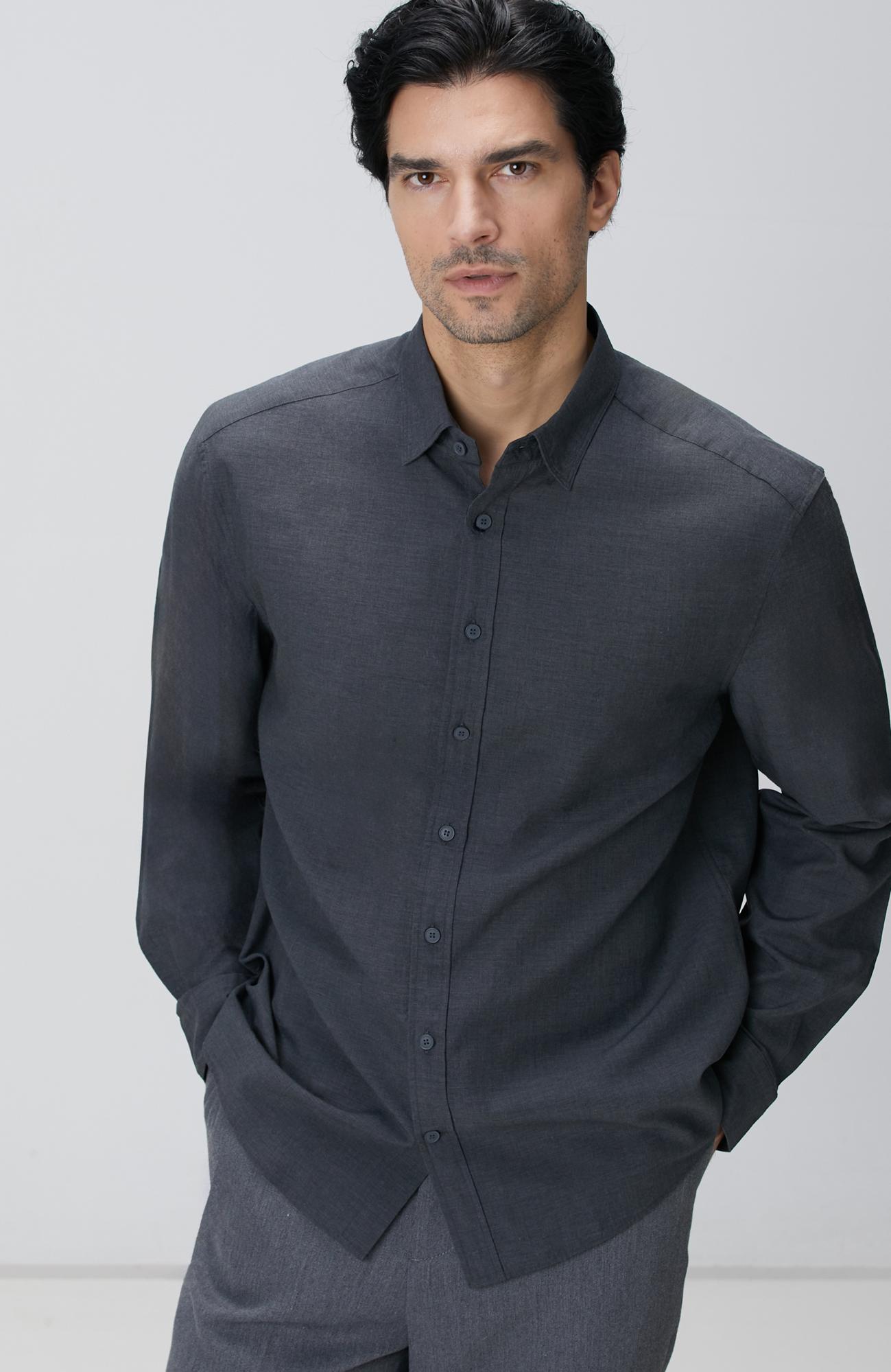 • Açıklama : %86 Tencel;%14 Yün;Comfort Fit; Alttan Britli Yaka; Yün Karışımlı; Dokuma Gömlek; Uzun Kol; Cepsiz
