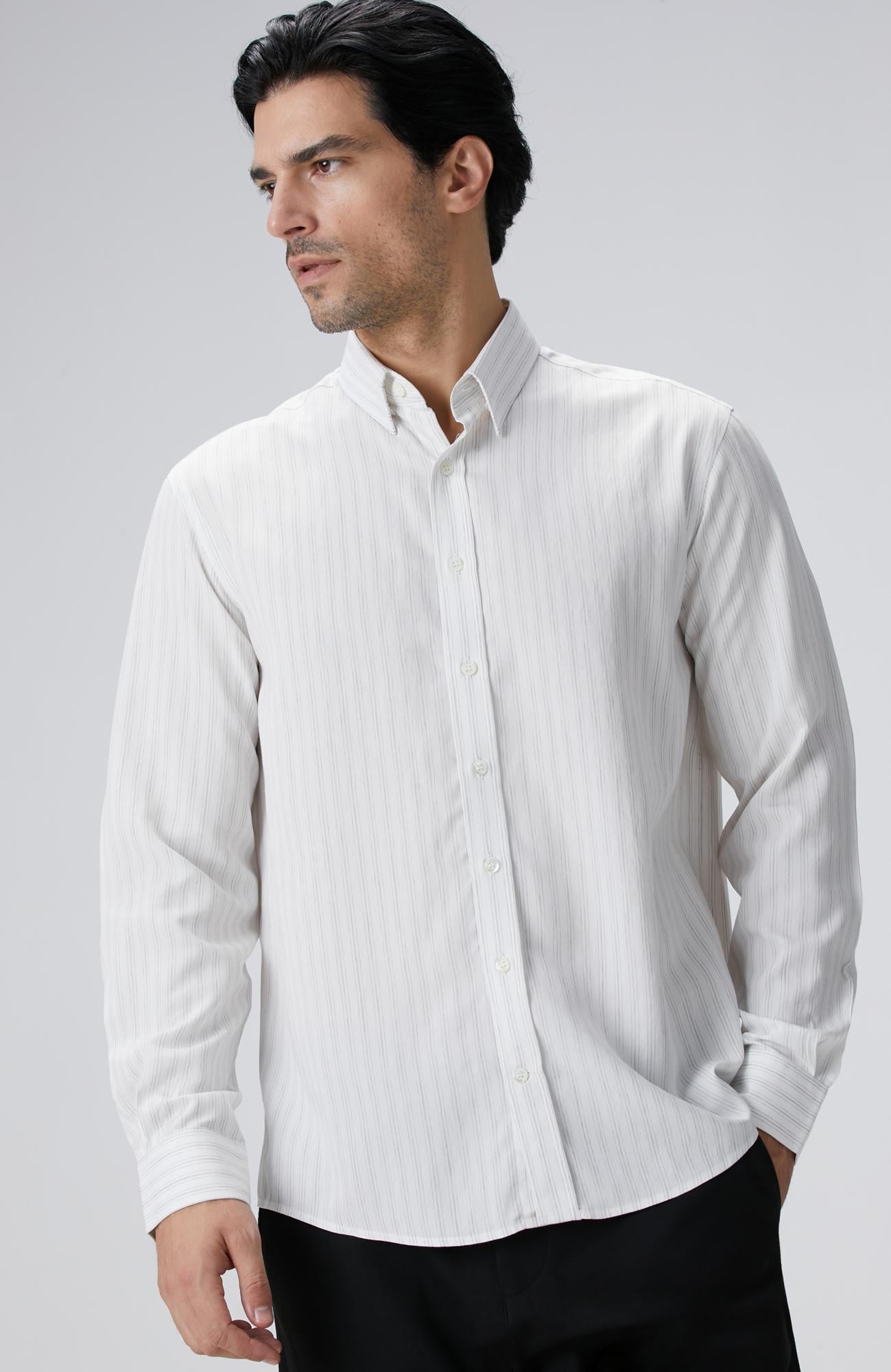 Network Erkek Beyaz Çizgili Gömlek