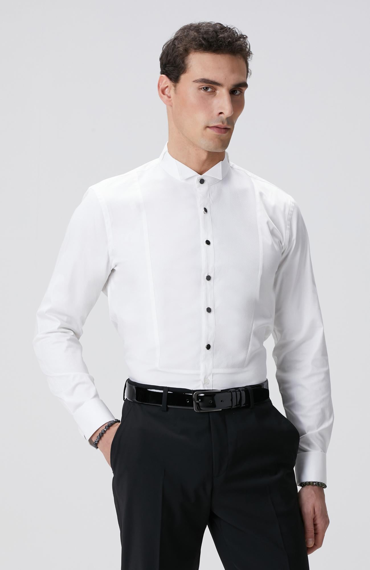 %98 Pamuk;%2 Elastan;Smokin Yaka; Düğme Kapatmalı; Saten Smokin Gömleği; Garnili; Manşet Detaylı;