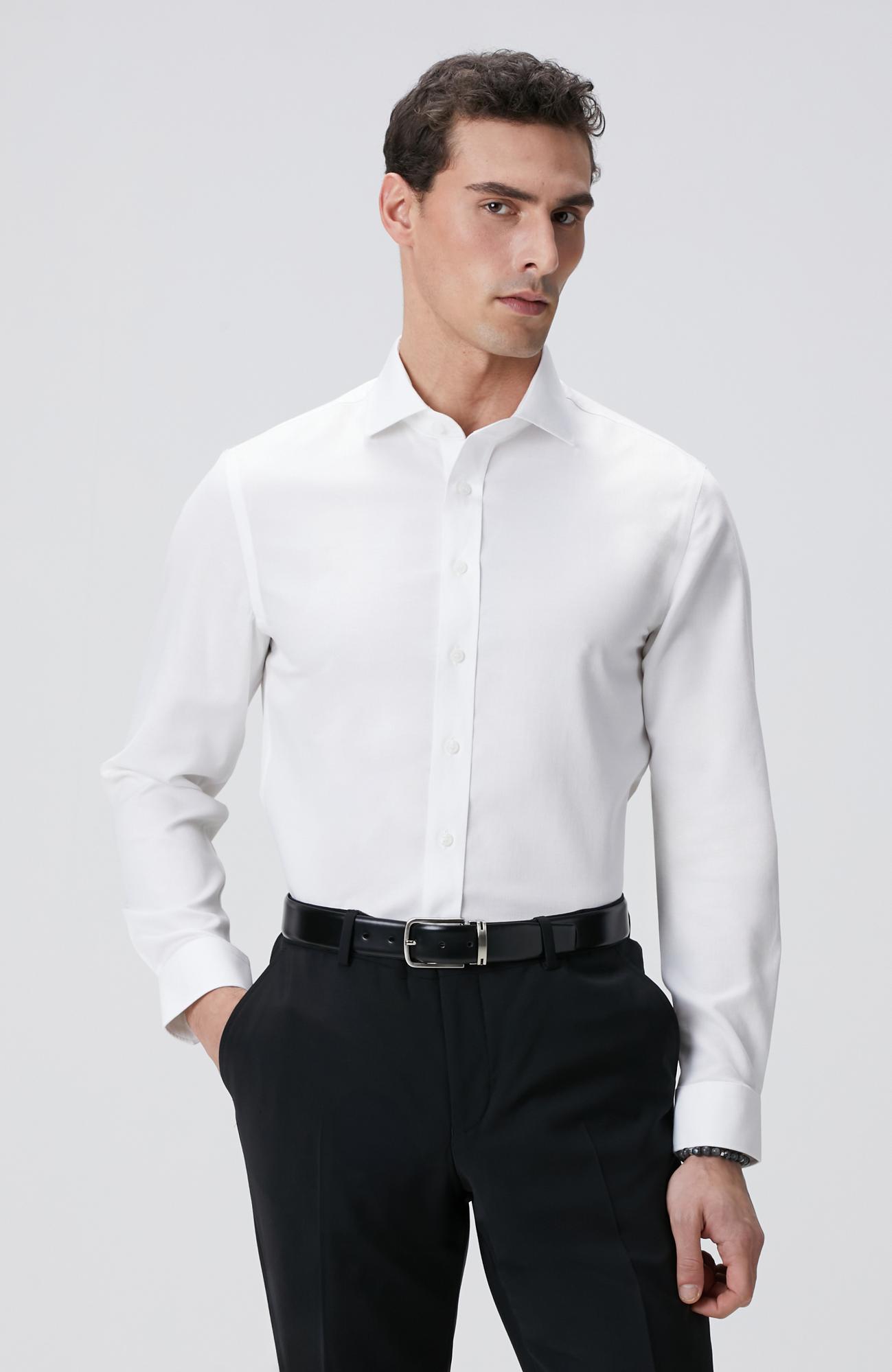 %100 Pamuk;Slim Fit; Yarım İtalyan Yaka; Uzun Kol; Saten Gömlek; Jakarlı; Cepsiz; Non-İron;