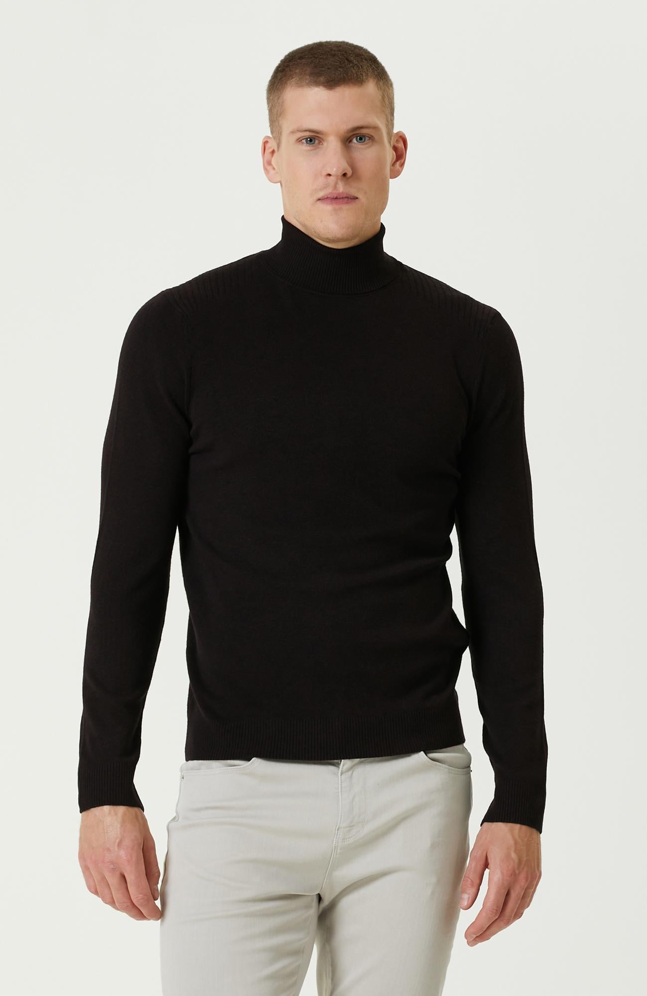 %90 Viscose;%10 Polibütilen Tereftalat;Slim Fit; Balıkçı Yaka; Uzun Kol; Viskoz Karışımlı; Basic Triko;
