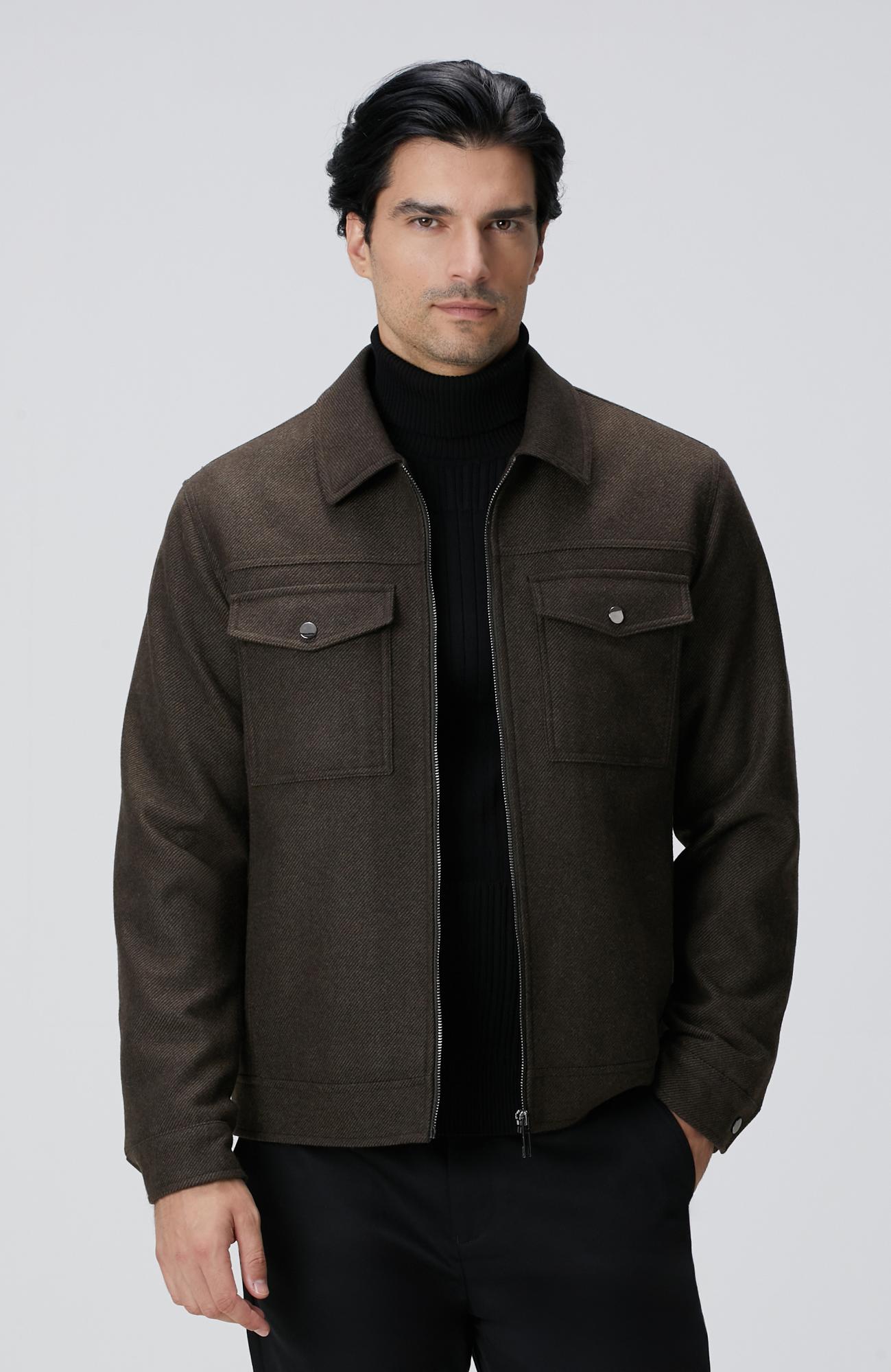 Açıklama : %65 Yün;%30 Polyester;%5 OTHER FABRIC;Comfort Fit; Gömlek Yaka; Uzun Kol; Yün Karışımlı; Dokuma Mont; Diyagonal Desenli; Yan Cepli