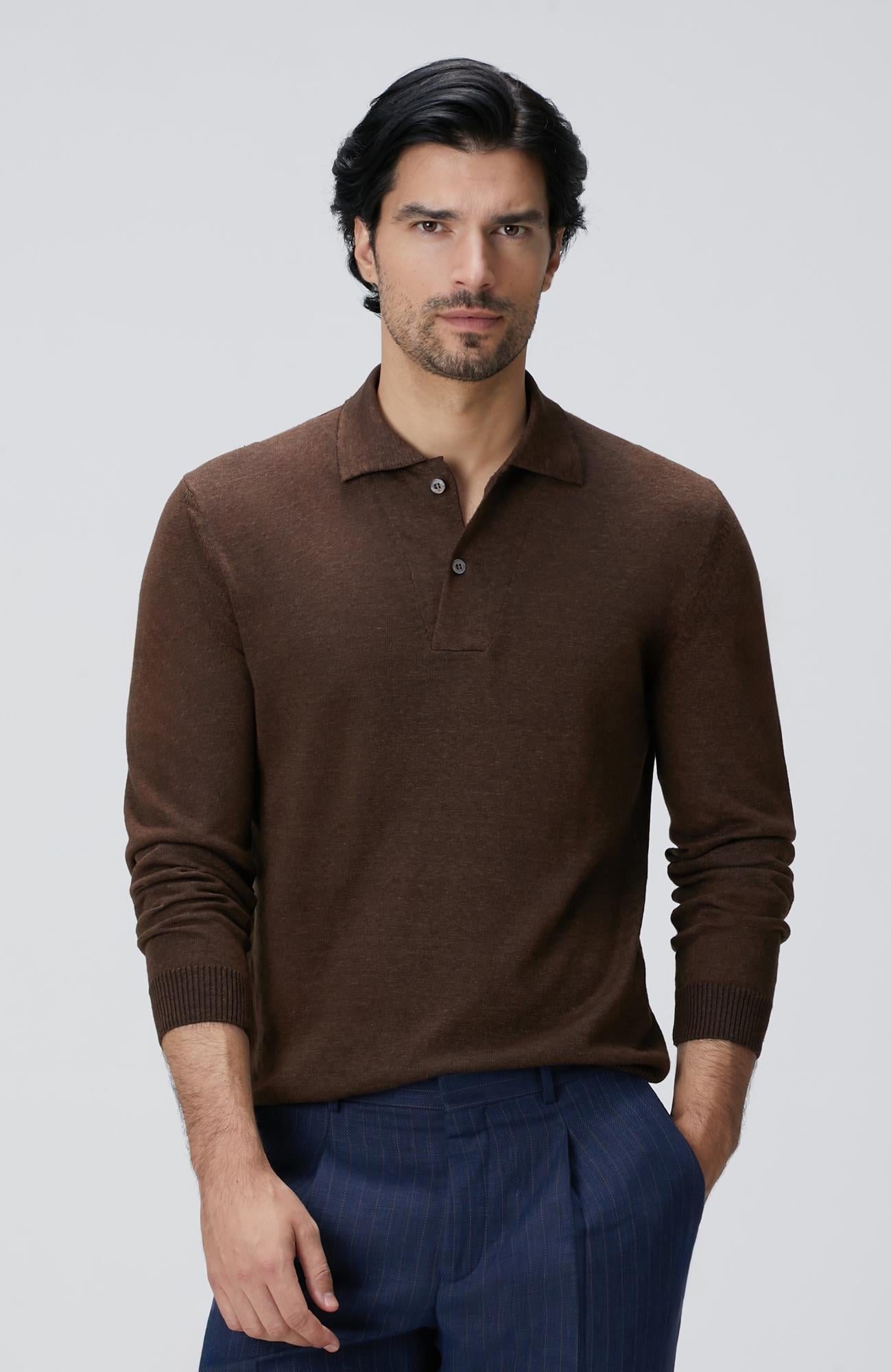 Network Erkek Kahverengi Polo Yaka Keten Karışımlı Triko Kazak