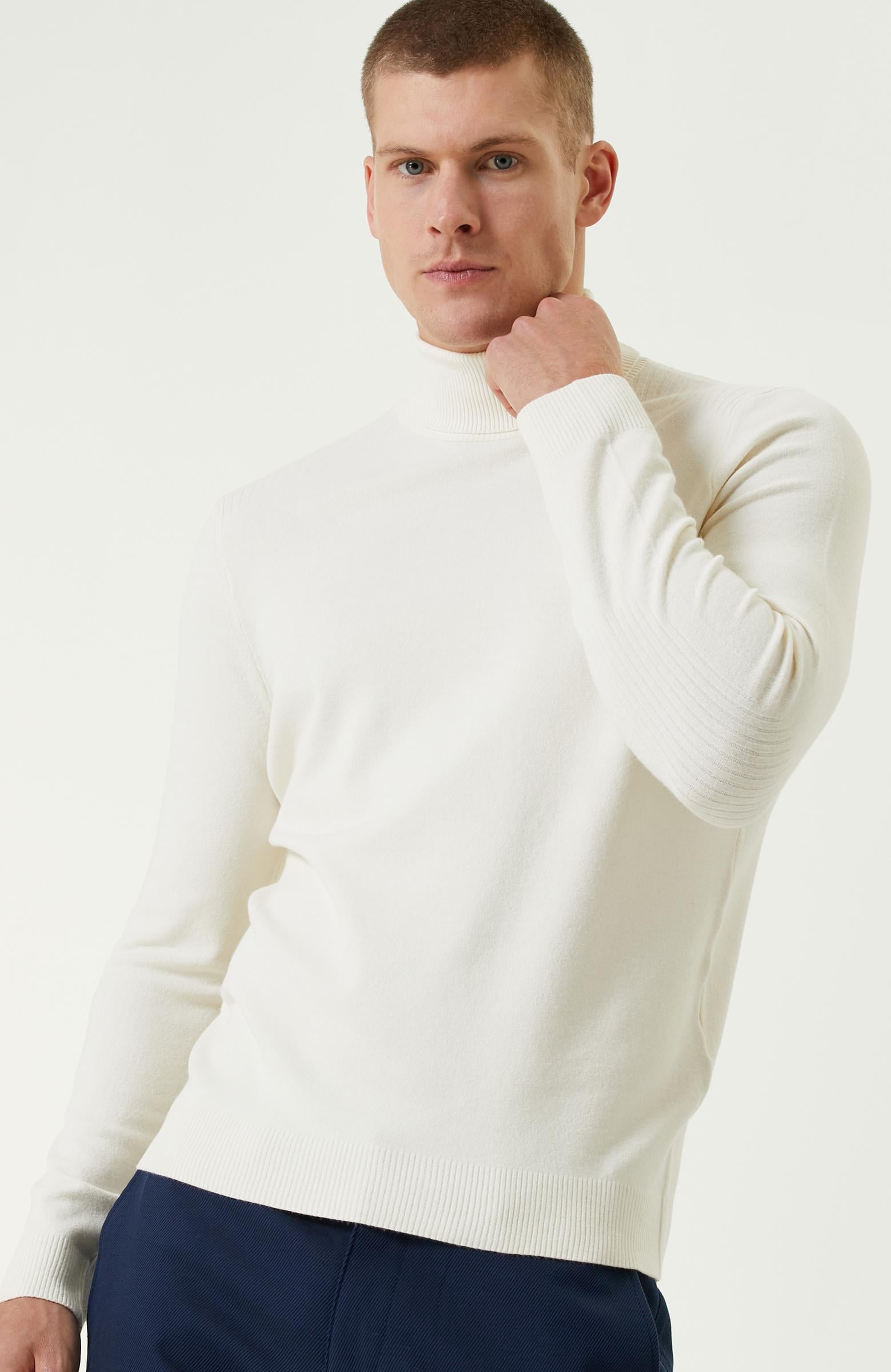 Network Erkek Kırık Beyaz Balıkçı Yaka Triko Kazak