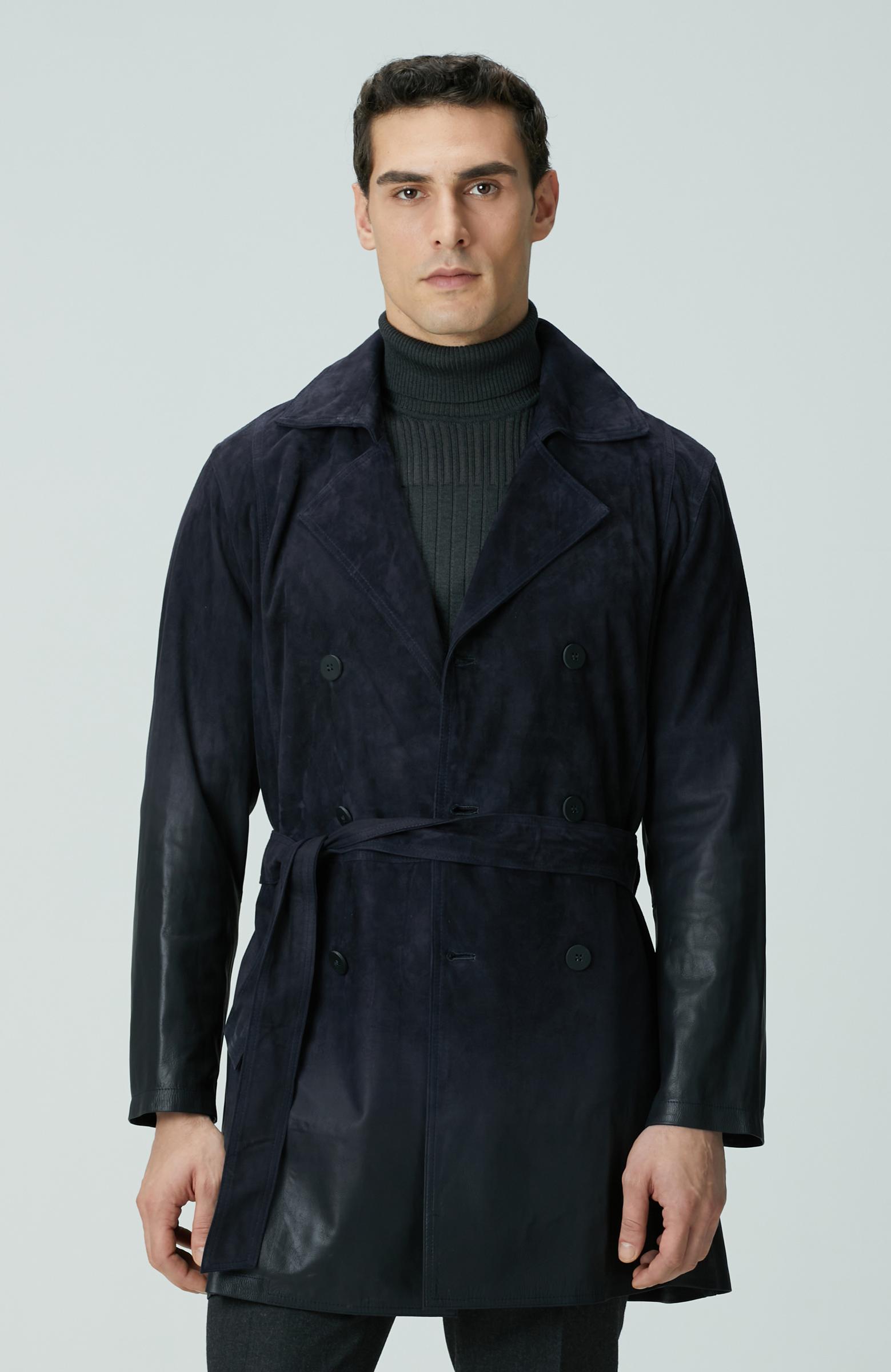 Network Erkek Lacivert Çift Taraflı Degrade Süet Pardesü