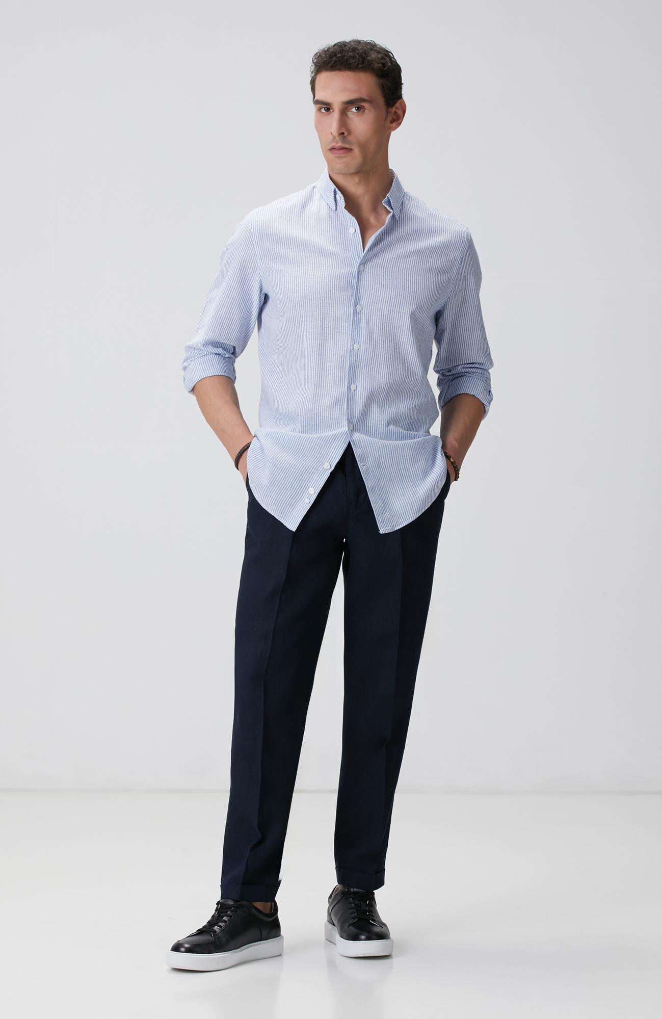 %100 Keten;Jogger Fit; Bağcıklı Orta Bel; Uzun Boy; Keten Pantolon; Duble Paça; 4 Cepli;