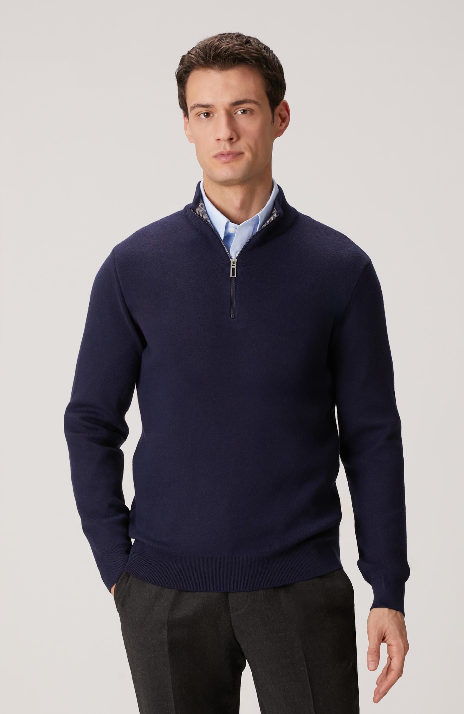 Network Erkek Lacivert Yakası Fermuarlı Triko Kazak