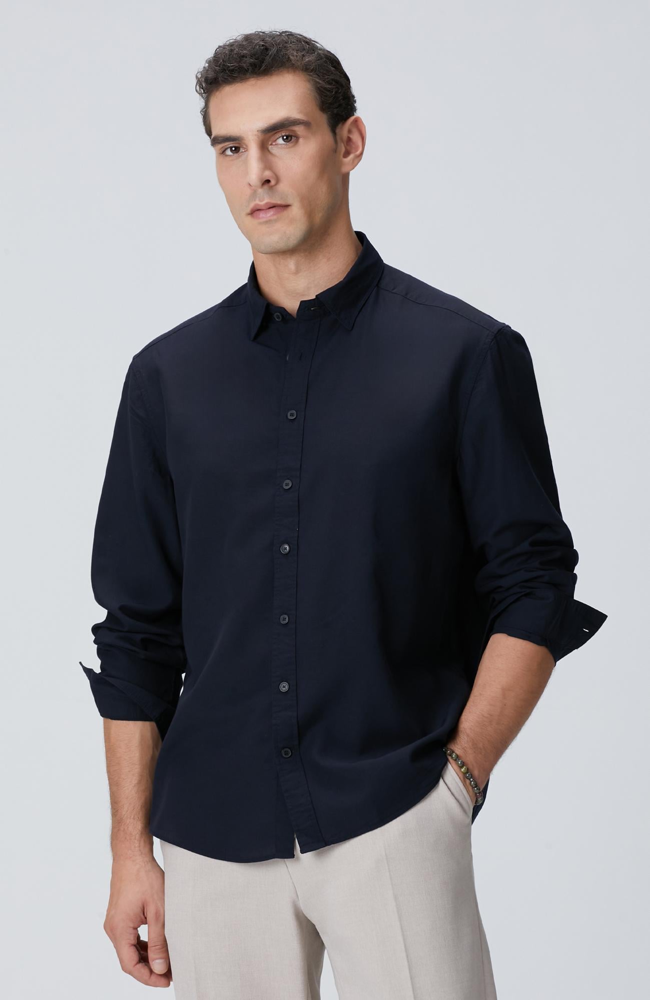 Açıklama : %86 Tencel;%14 Yün;Comfort Fit; Alttan Britli Yaka; Uzun Kol; Dokuma; Yün Karışımlı Gömlek; Düz Renk; Cepsiz