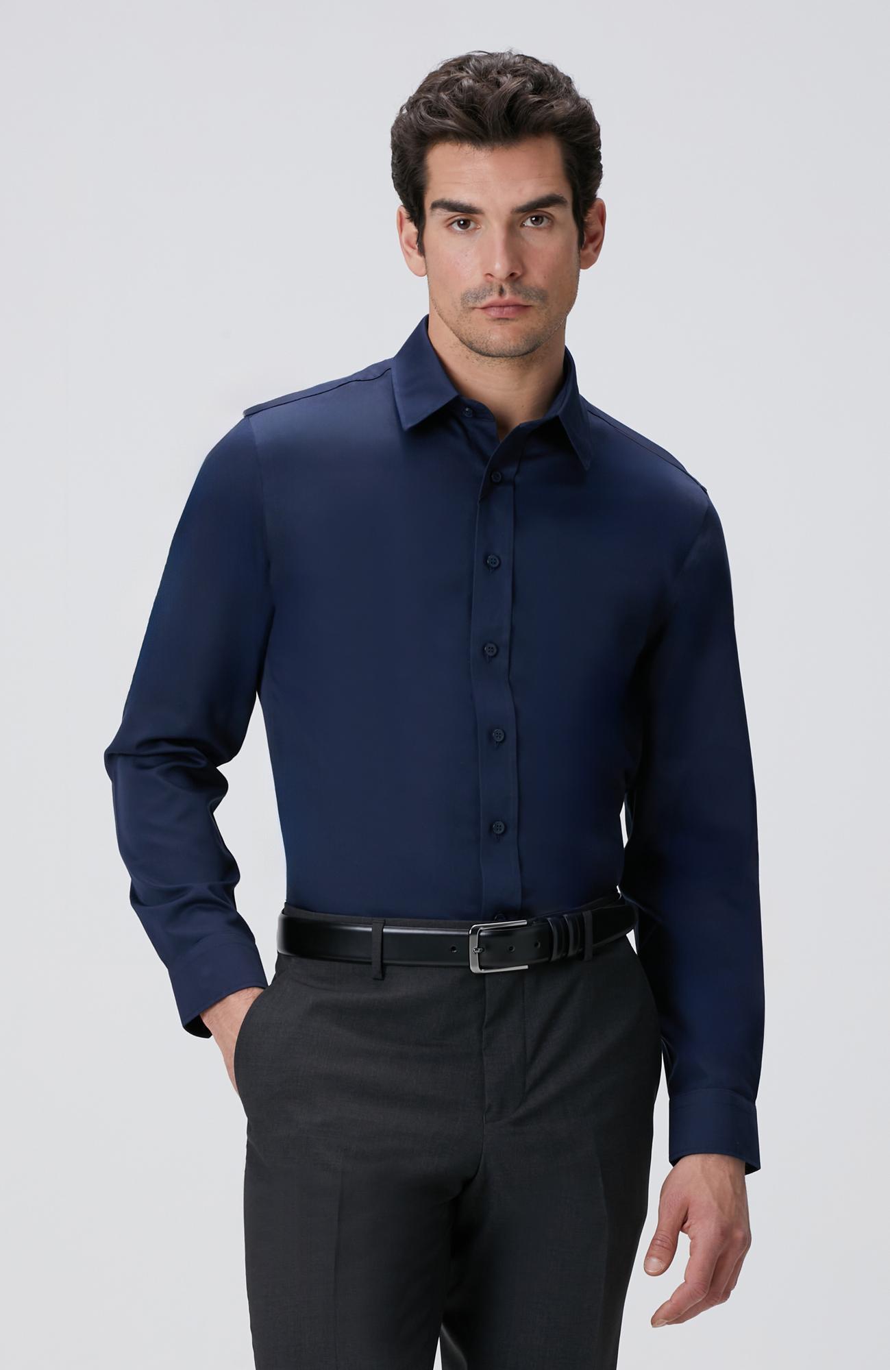 %100 Pamuk;Slim Fit; Balenli Klasik Yaka; Saten Gömlek; Uzun Kol; Cepsiz; Non-Iron;