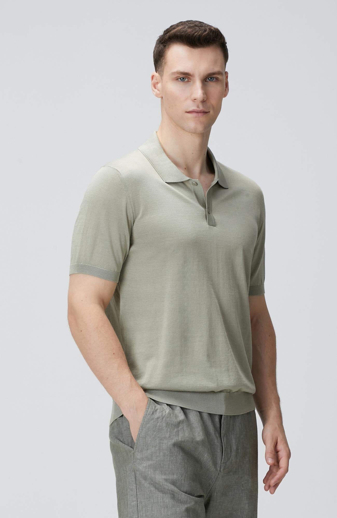 Açıklama : %59 İpek;%41 Pamuk;Slim Fit; Polo Yaka; Düğmeli; İpek Karışımlı Triko Kazak; Düz Renk; Kısa Kol