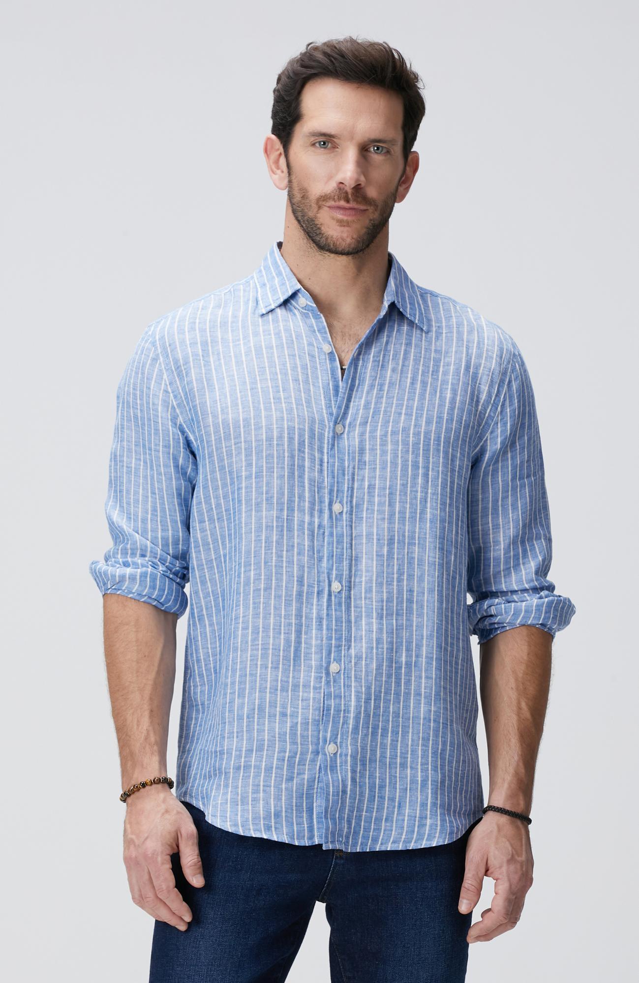 %100 Keten;Comfort Fit; Düğmeli Yaka; Uzun Kol; Çizgili; Keten Gömlek;
