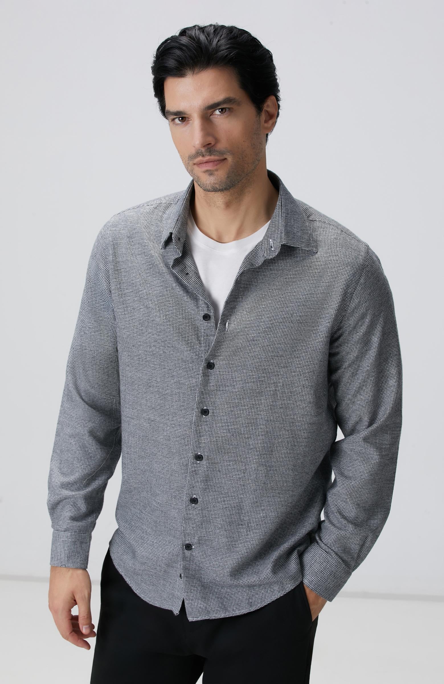 Network Erkek Siyah Beyaz Kaz Ayağı Desenli Gömlek