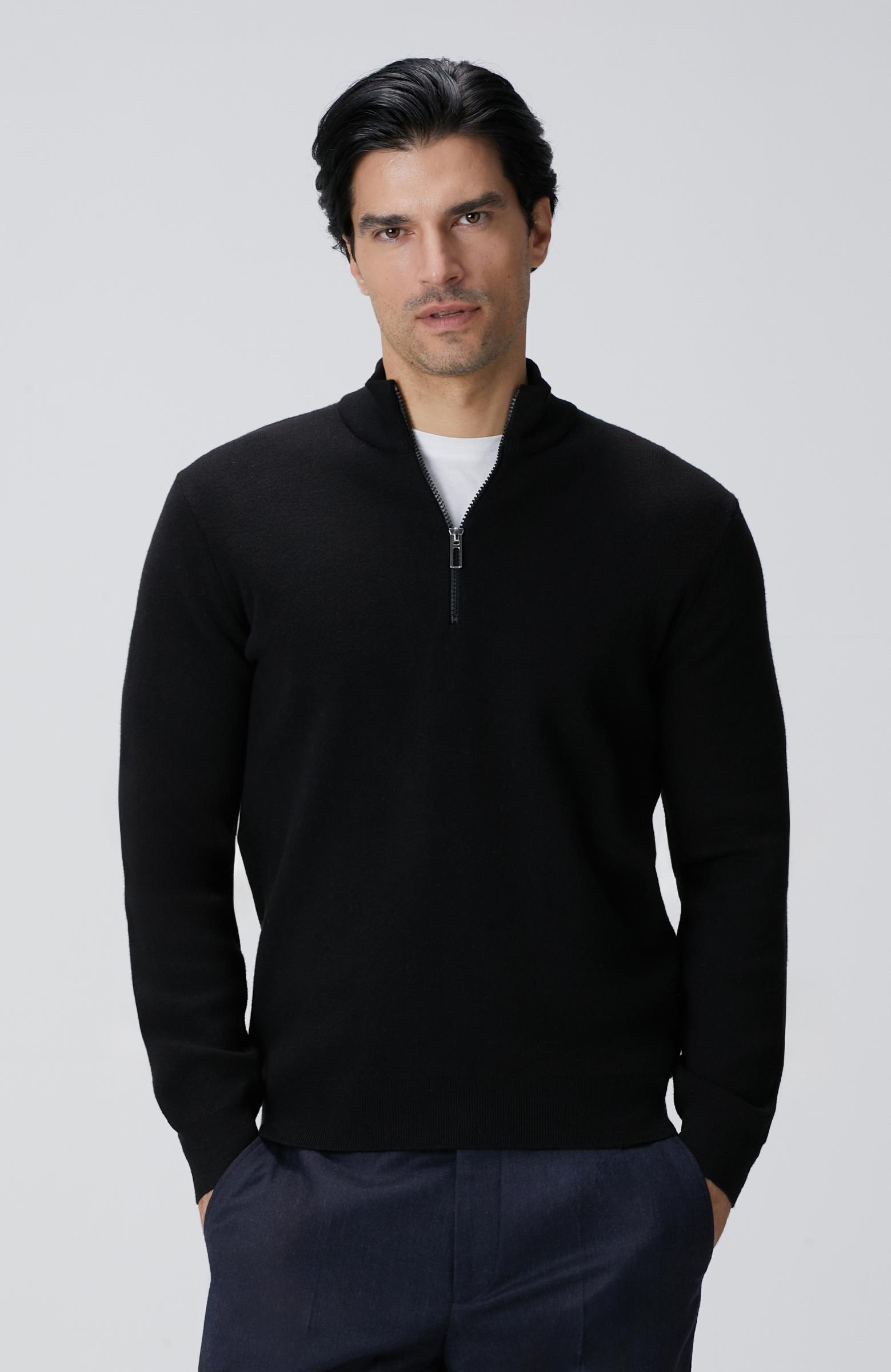 Network Erkek Siyah Dik Yaka Fermuarlı Triko Kazak
