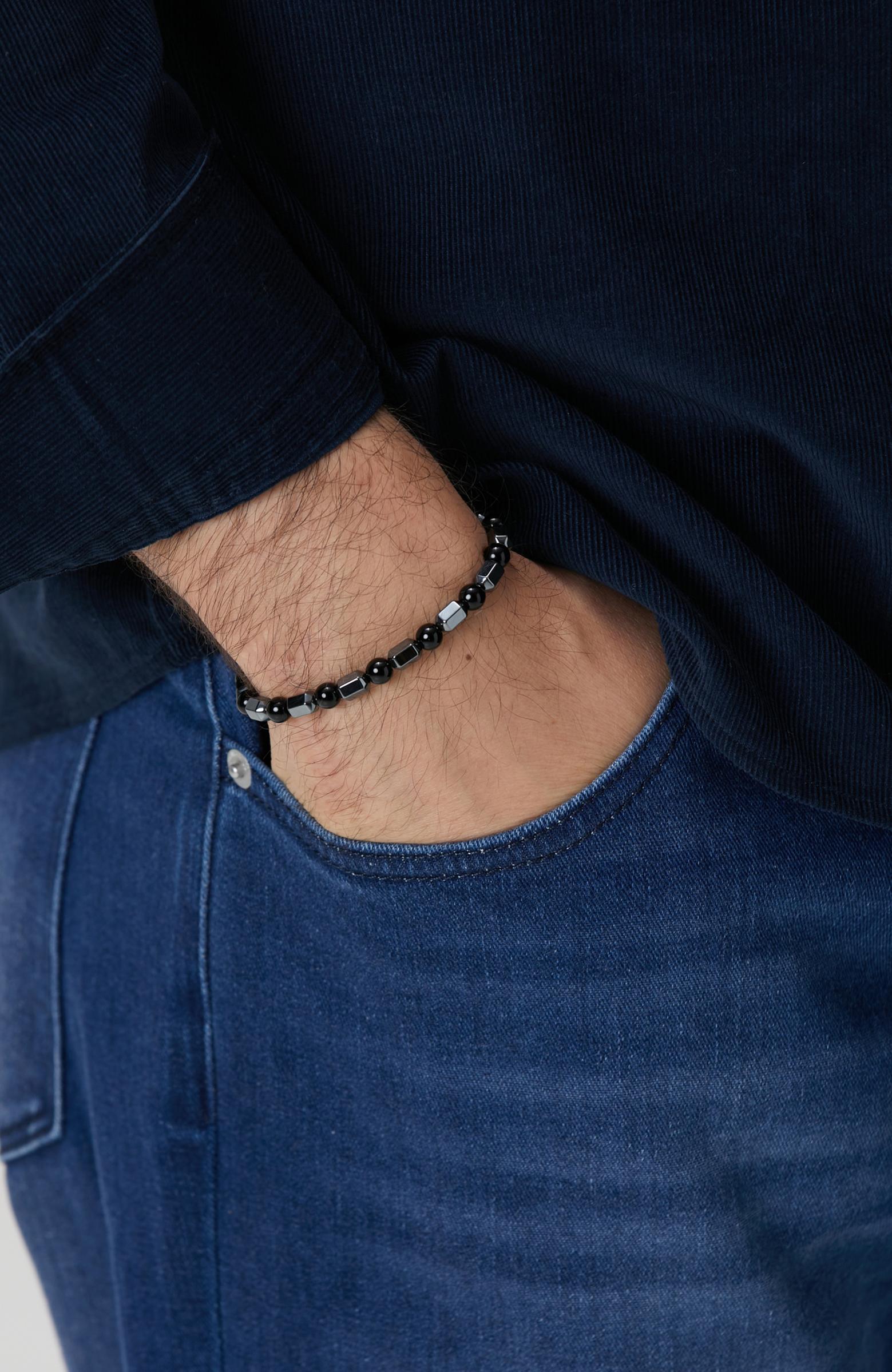 %100 Taş;Siyah Erkek Bileklik;