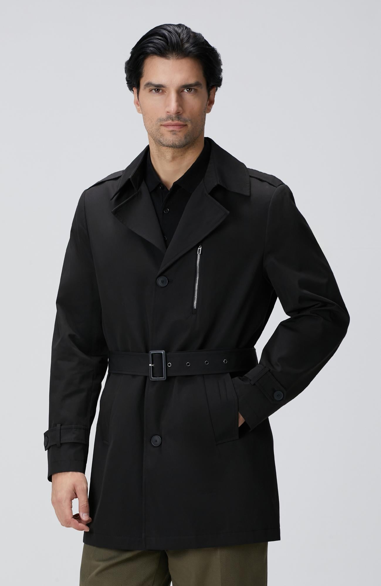Network Erkek Siyah Kuşaklı Pardösü