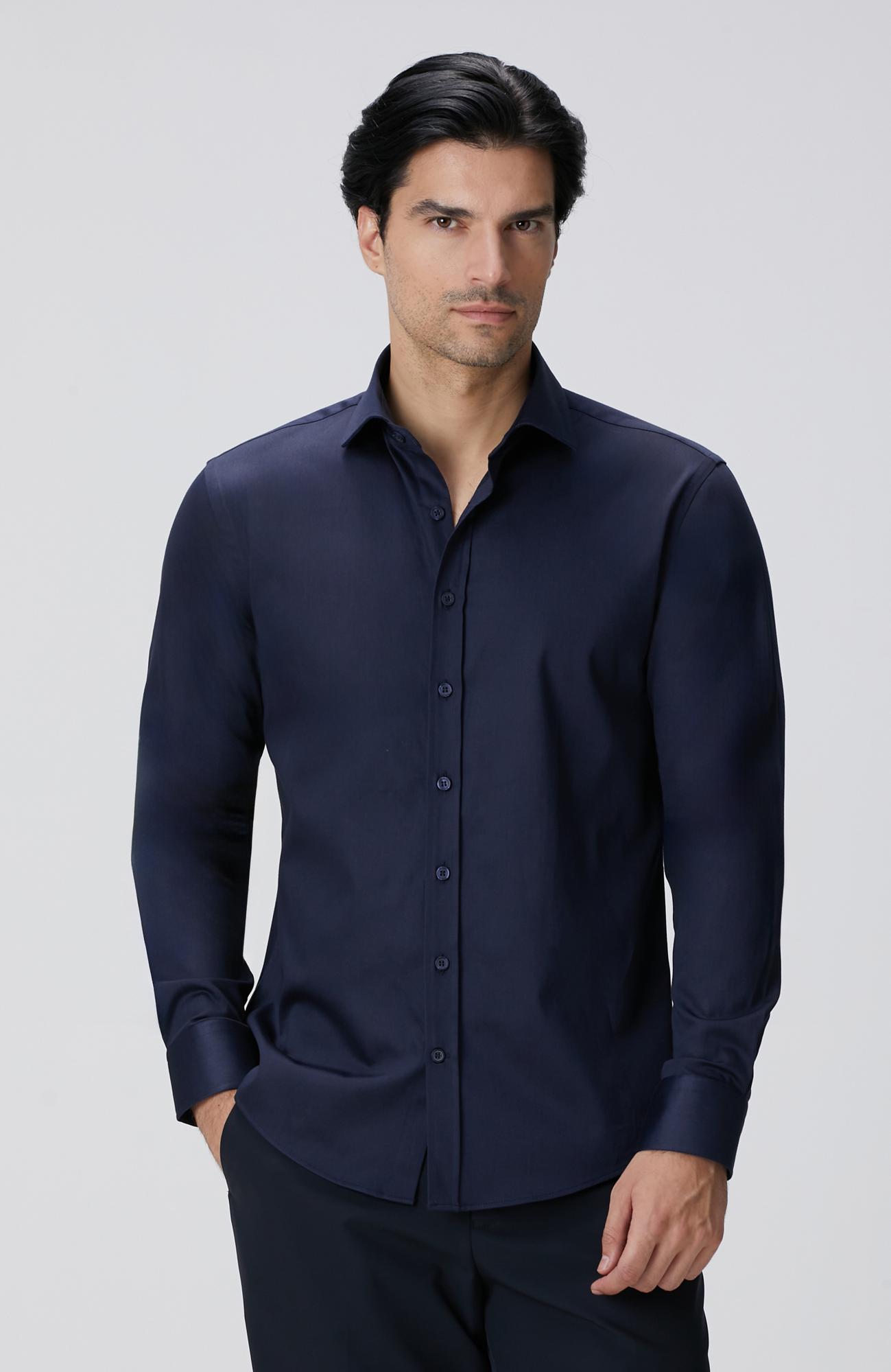 Network Erkek Slim Fit Lacivert Pamuk Saten Gömlek