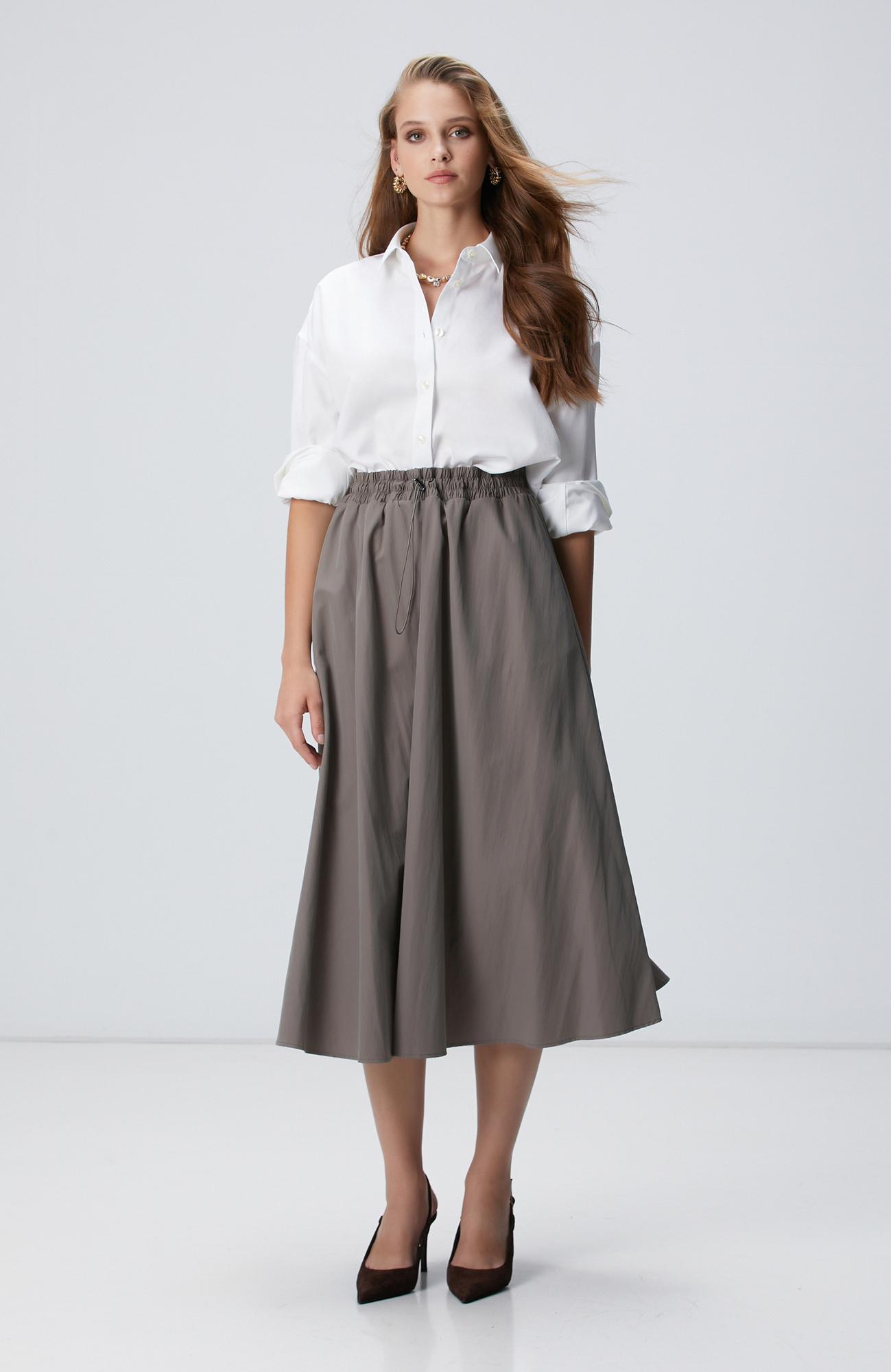 Açıklama : %57 Polyester;%43 Polyamid;Basic Fit; Beli Büzgü Lastikli; Diz Altı Bol Etek; Düz Paça; Cepli