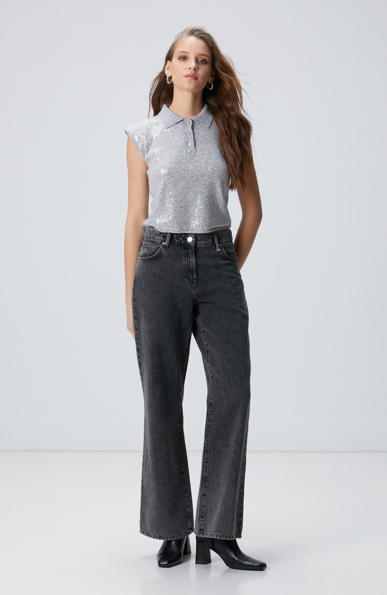 Açıklama : %100 Pamuk;Straight Fit; Normal Bel; Geniş Paça Denim Pantolon; Cepli