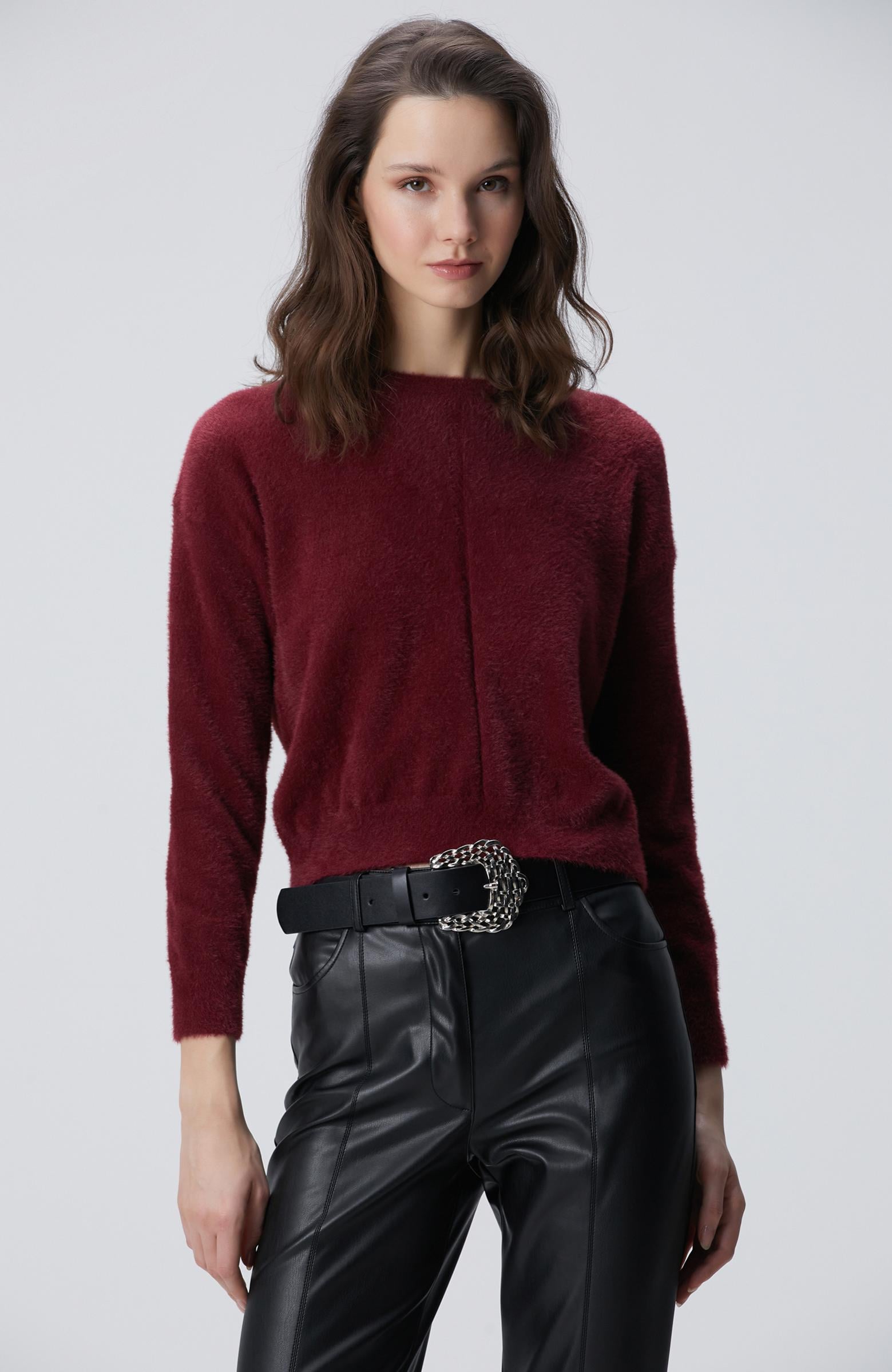 Network Kadın Bordo Sakal İp Basic Kazak