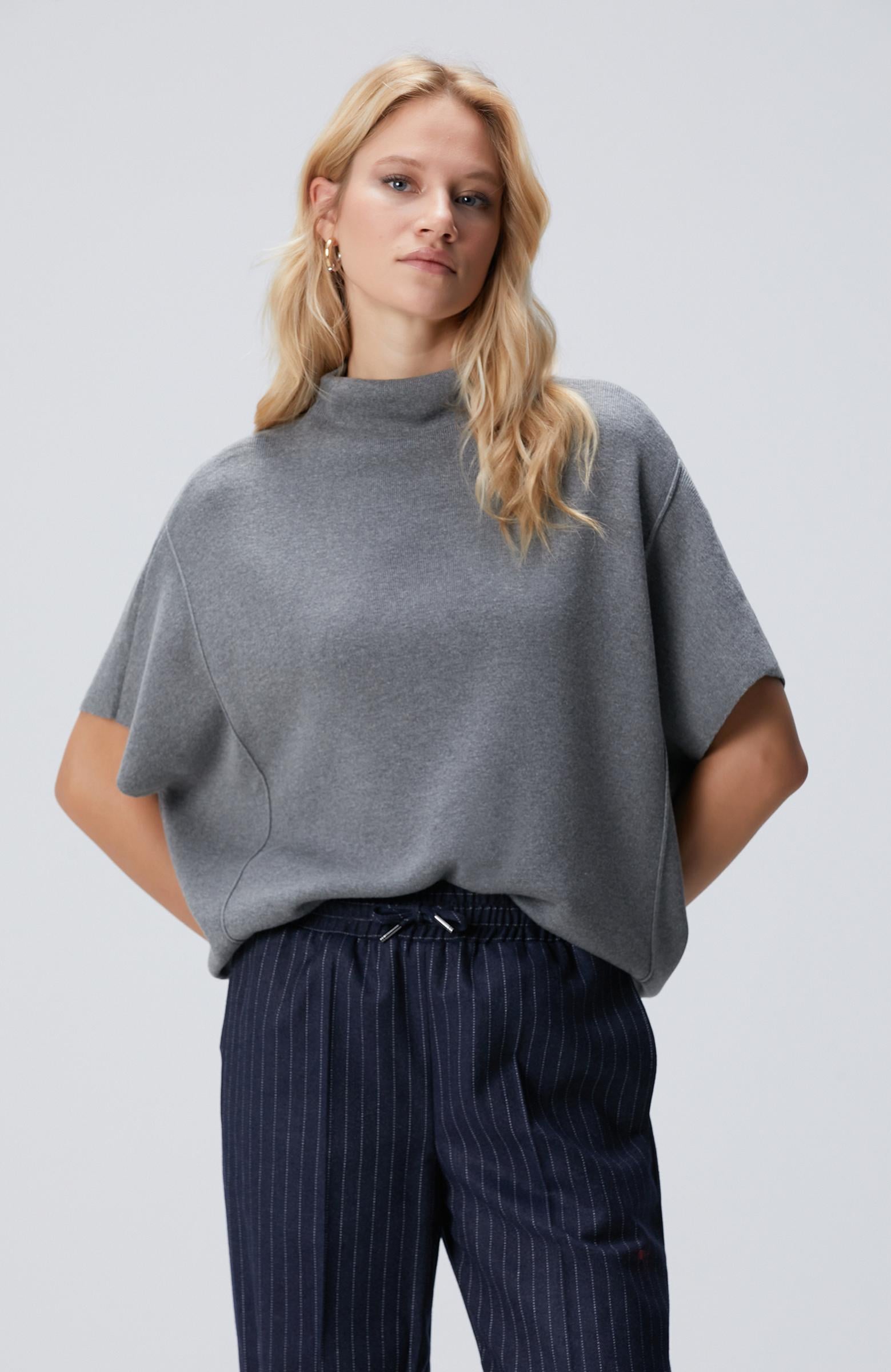 Network Kadın Gri Dik Yaka Kısa Kollu Nervür Detaylı Kazak