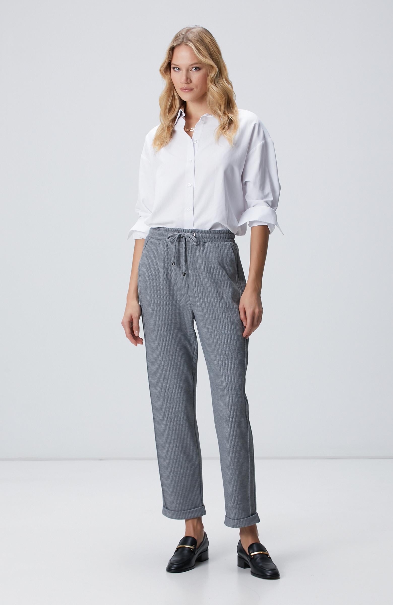 Açıklama : %65 Polyester;%28 Viscose;%7 Elastan;Basic Fit; Lastikli Orta Bel; Duble Paça; Örme Pantolon; Desenli; Yandan Dikiş Detaylı; Cepli