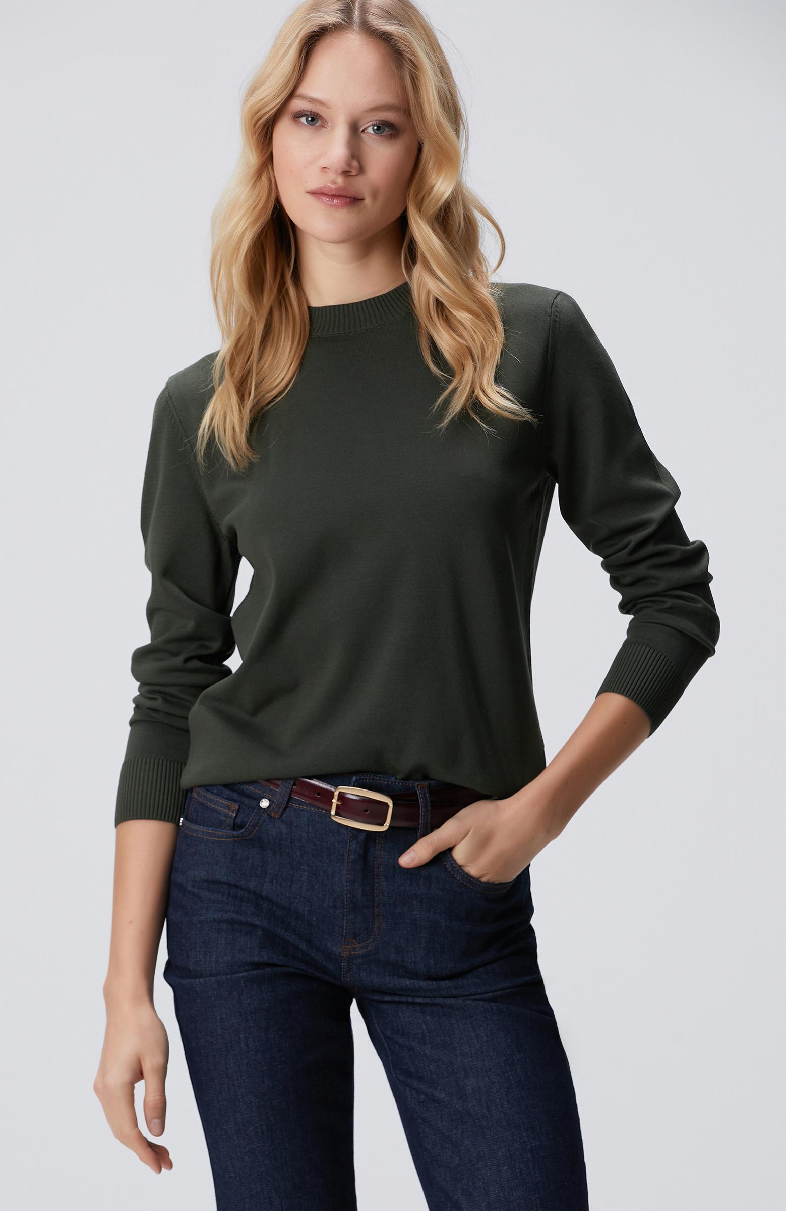 Açıklama : %60 Viscose;%40 Polyester;Basic Fit; Bisiklet Yaka; Basic Kazak; Uzun Kol; Cepsiz