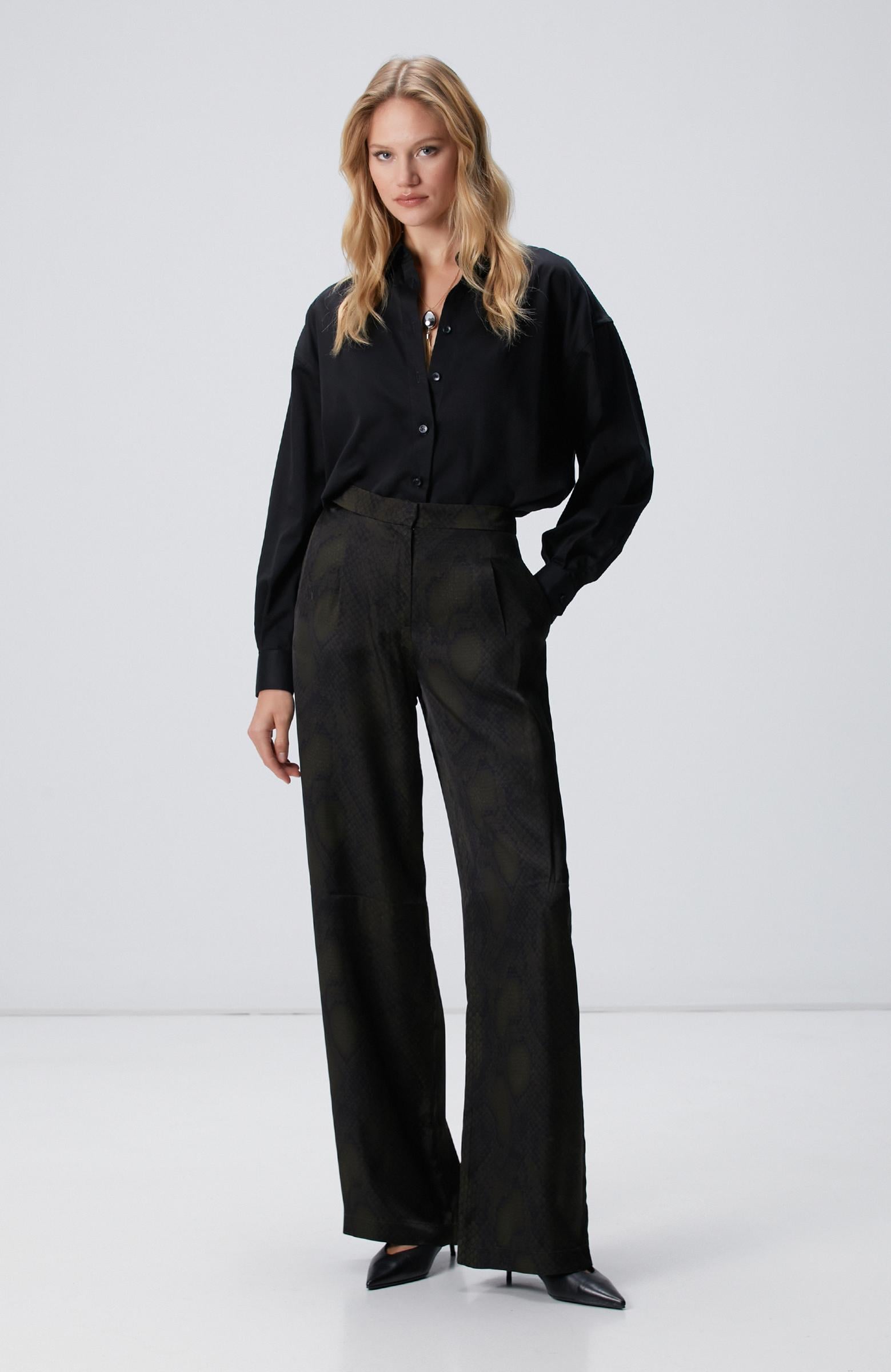 Açıklama : %100 Viscose;Regular Fit; Yüksek Bel; Düz Paça Pantolon; Desenli; Cepli