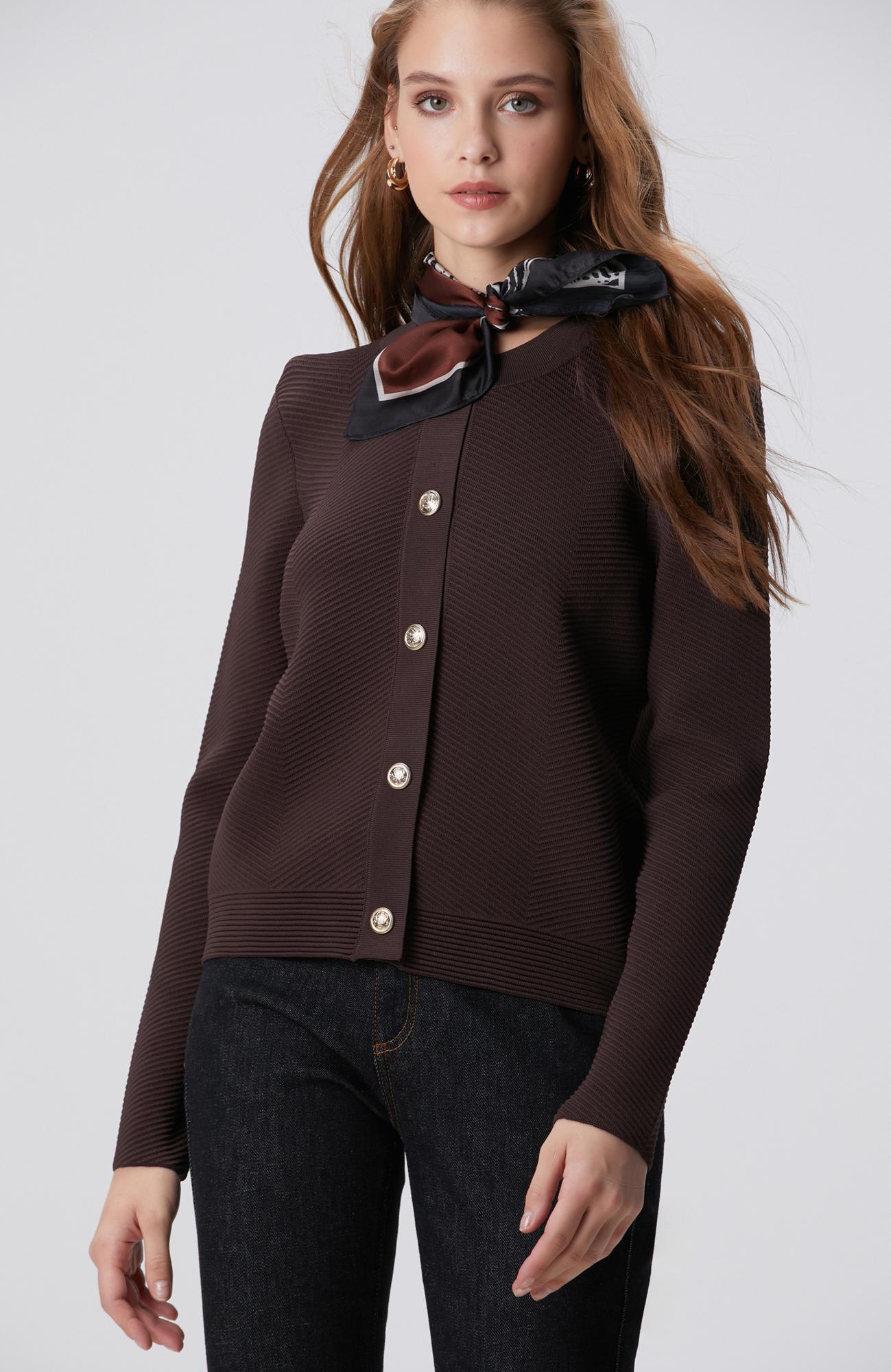 Açıklama : %65 Viscose;%35 Polyamid;Regular Fit; Bisiklet Yaka; Uzun Kol; Triko Ceket; Çıtçıt Kapatmalı
