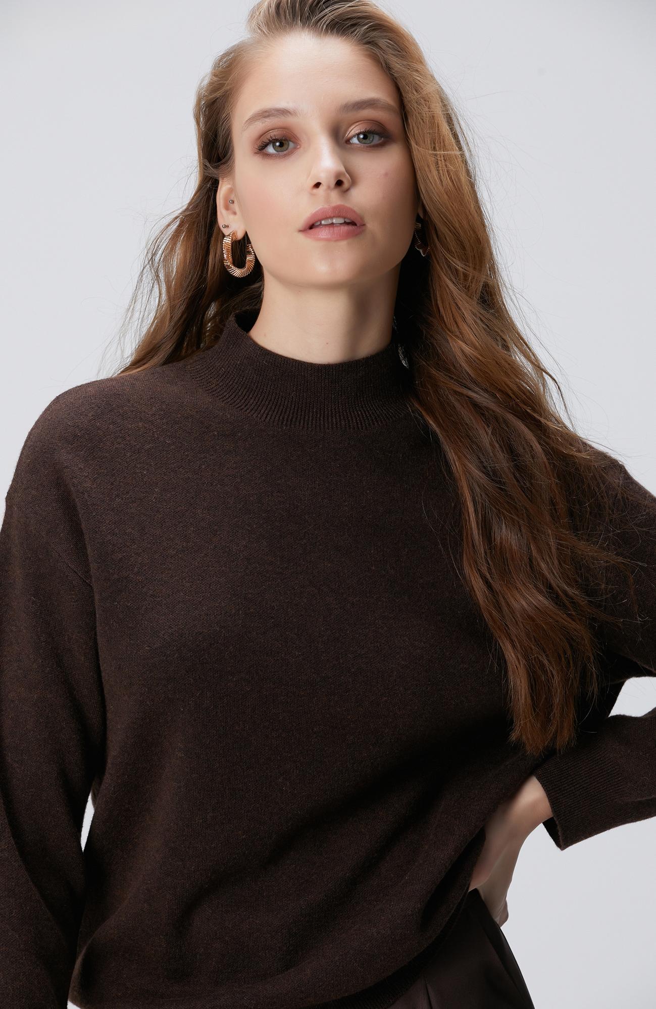 Network Kadın Kahverengi Yün Karışımlı Triko Kazak
