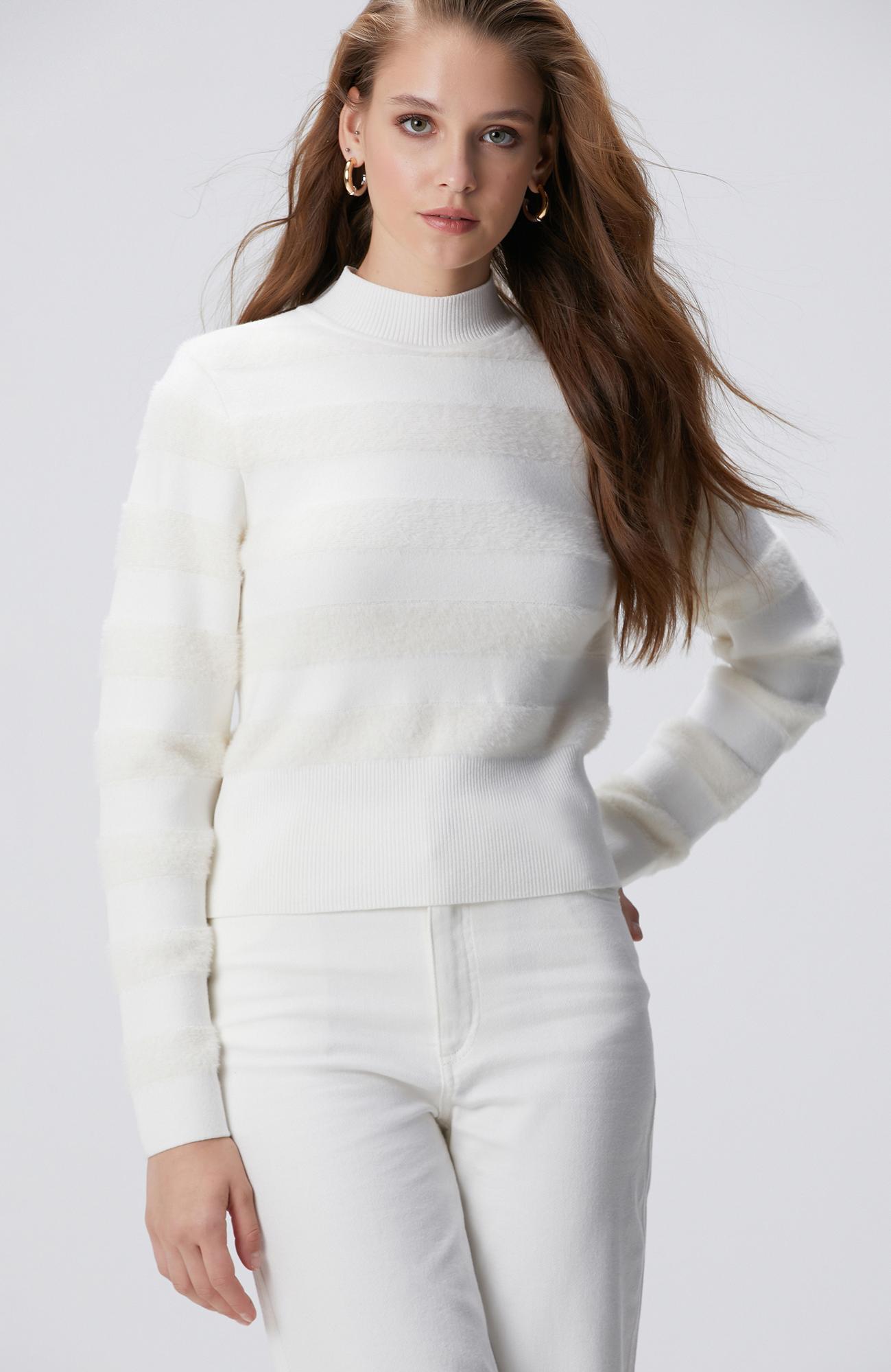 Network Kadın Kırık Beyaz Çizgili Triko Kazak