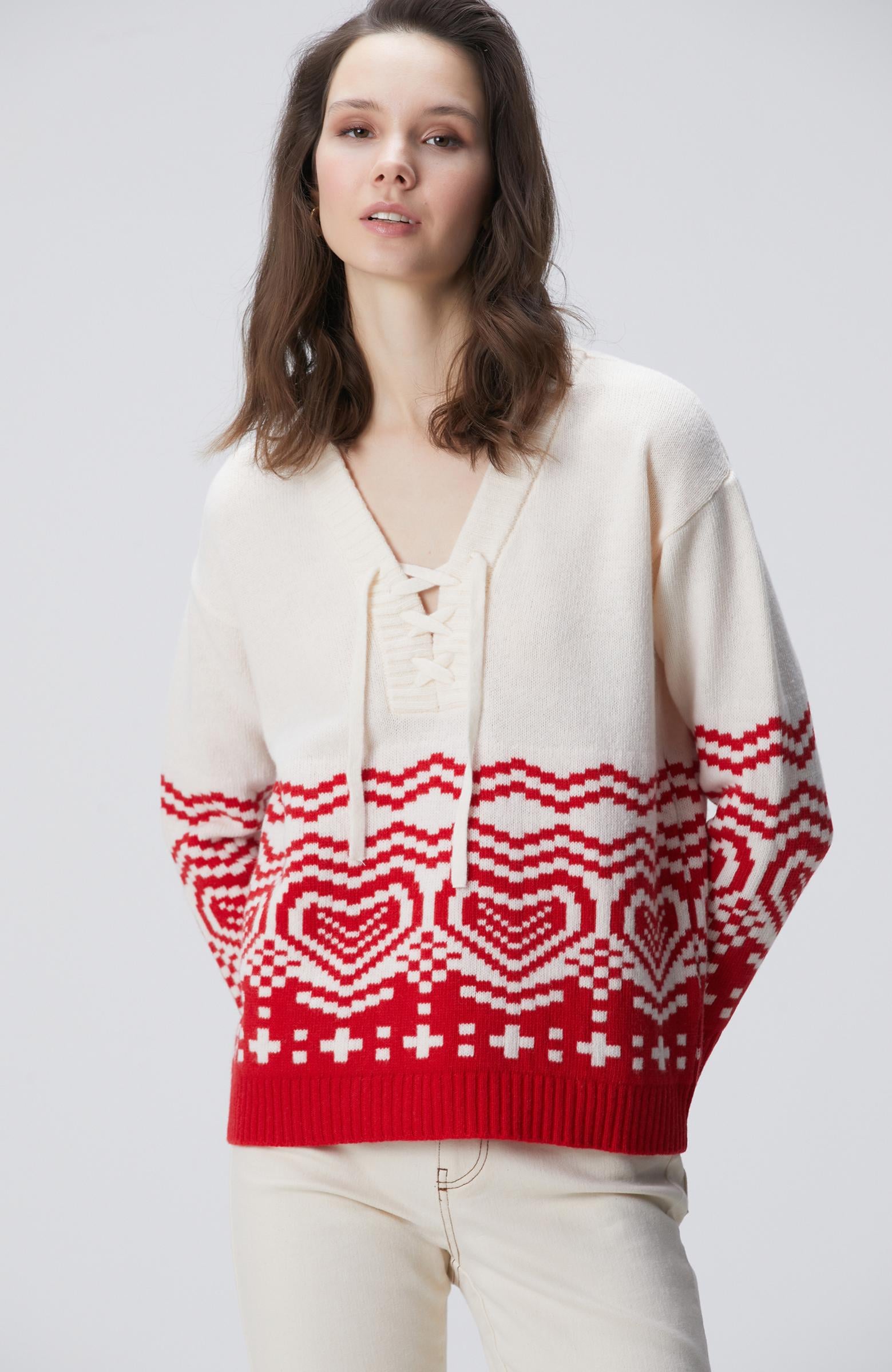 Network Kadın Kırık Beyaz Desenli Yün Karışımlı Triko Kazak