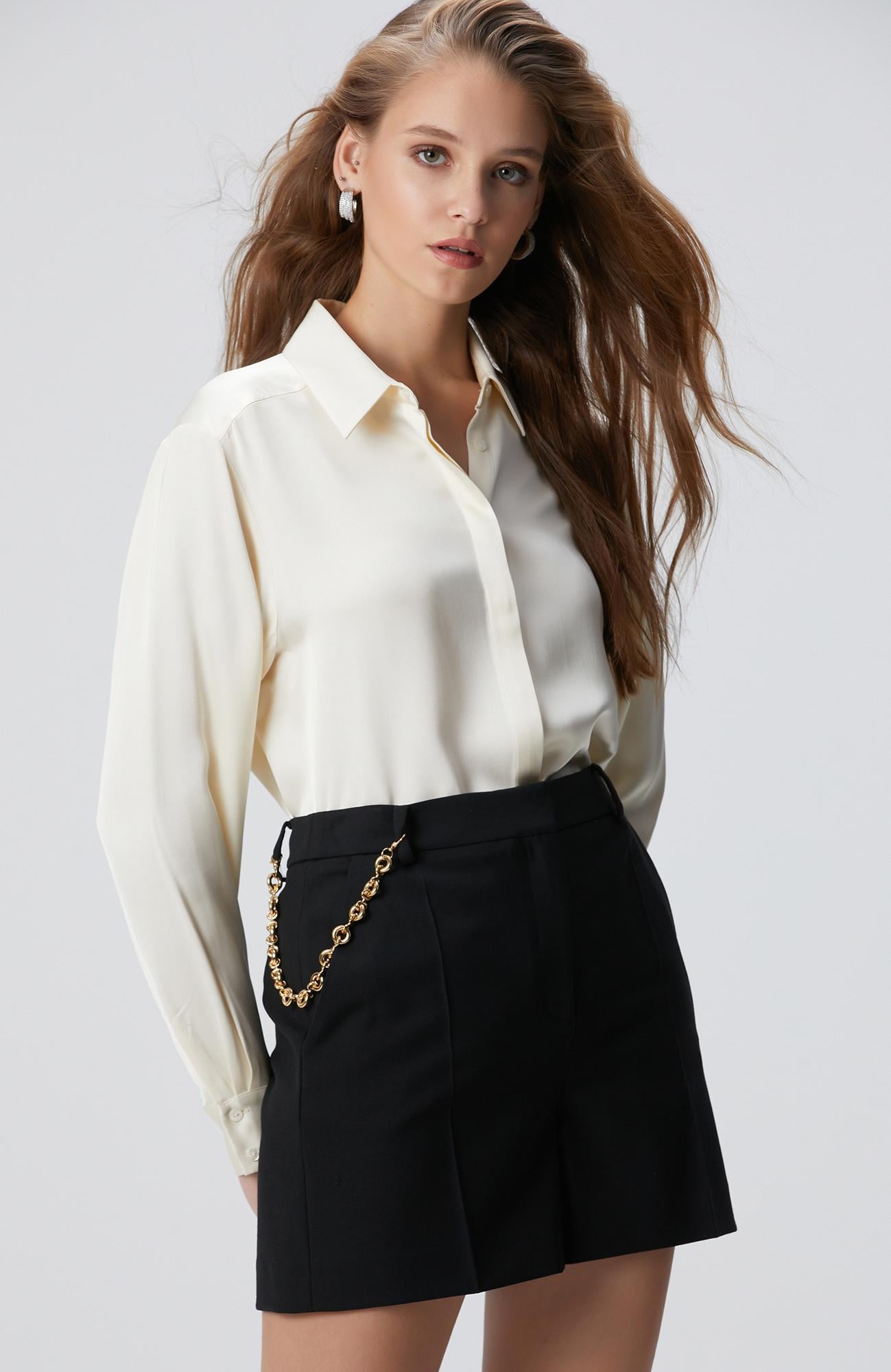 Network Kadın Kırık Beyaz Saten Gömlek