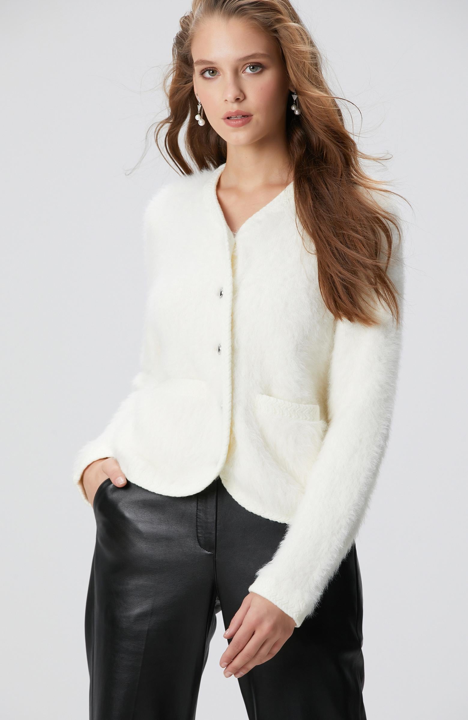 Network Kadın Kırık Beyaz Yumuşak Dokulu Triko Ceket