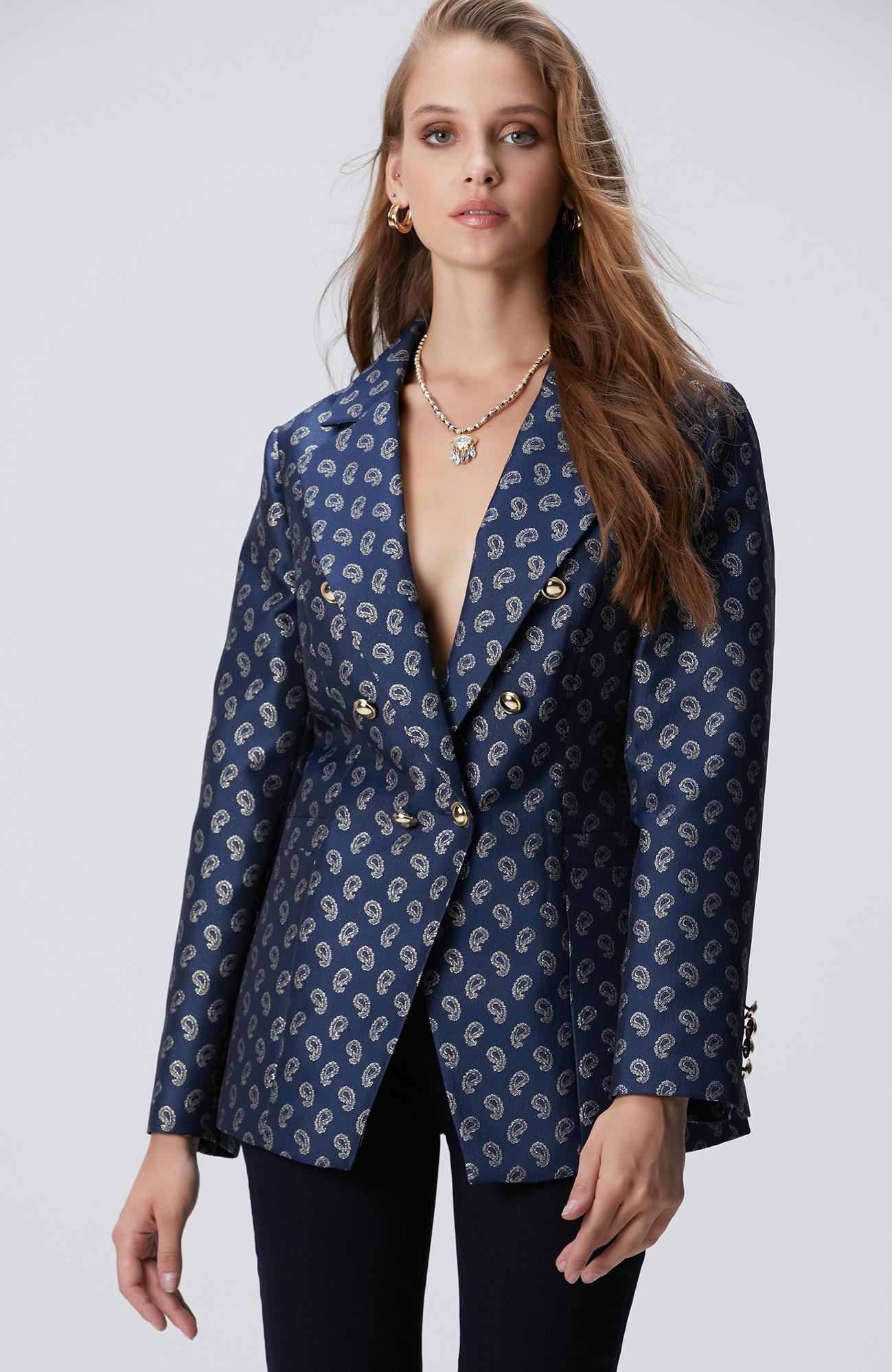 Network Kadın Lacivert Jakar Desenli Ceket