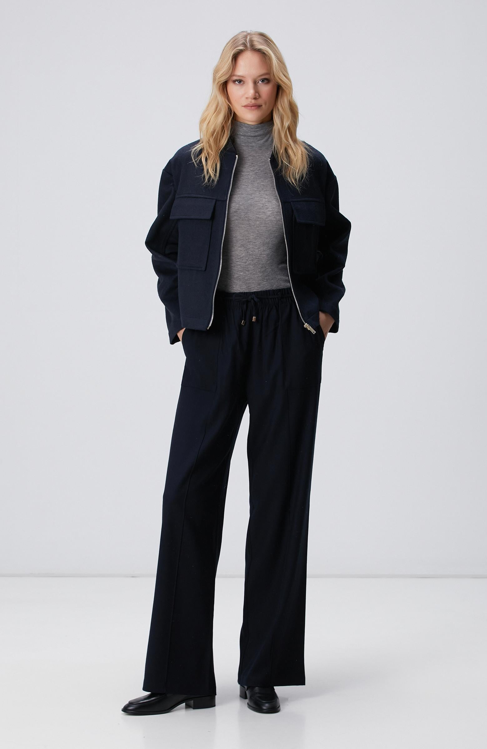 Açıklama : %56 Tencel;%40 Viscose;%4 Elastan;Basic Fit; Normal Bel; Geniş Paça; Tencel Pantolon; İnce Diyagonal Desenli; Beli İp Bağlamalı; Cepli