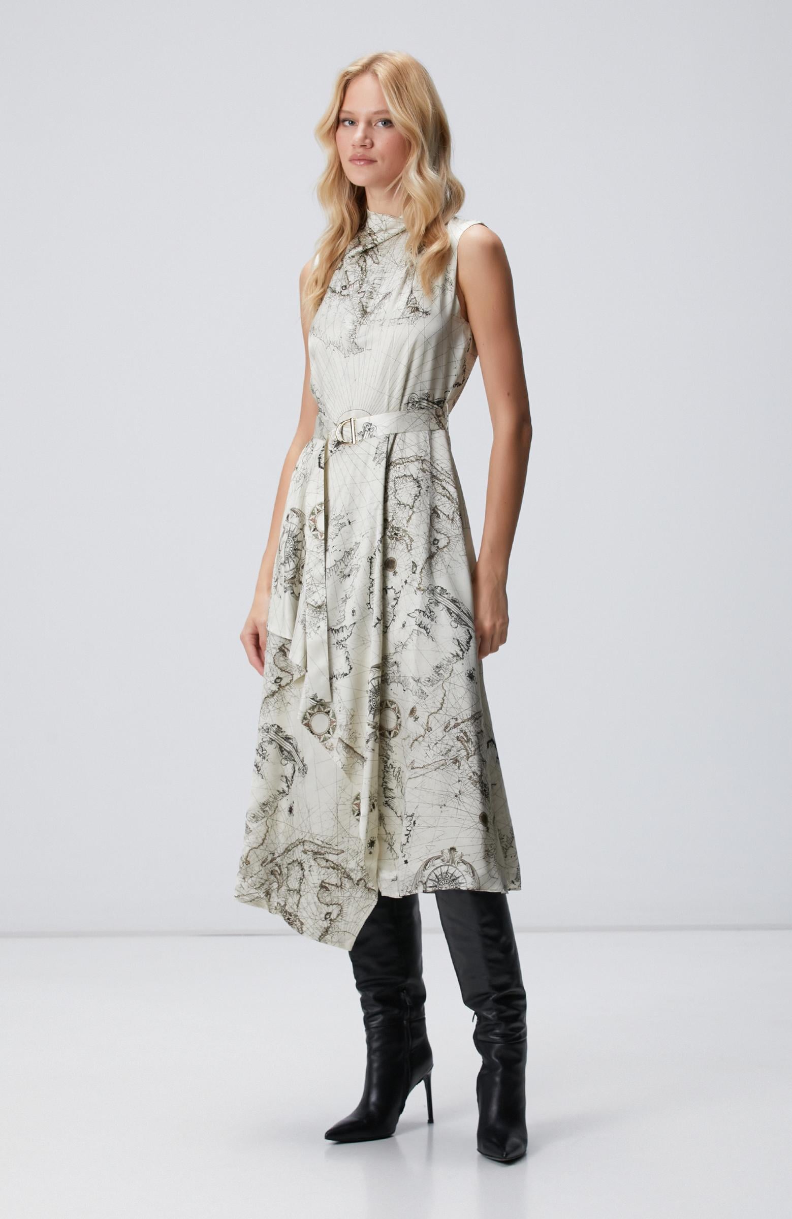 Network Kadın Limited Açık Bej Desenli İpek Karışımlı Elbise