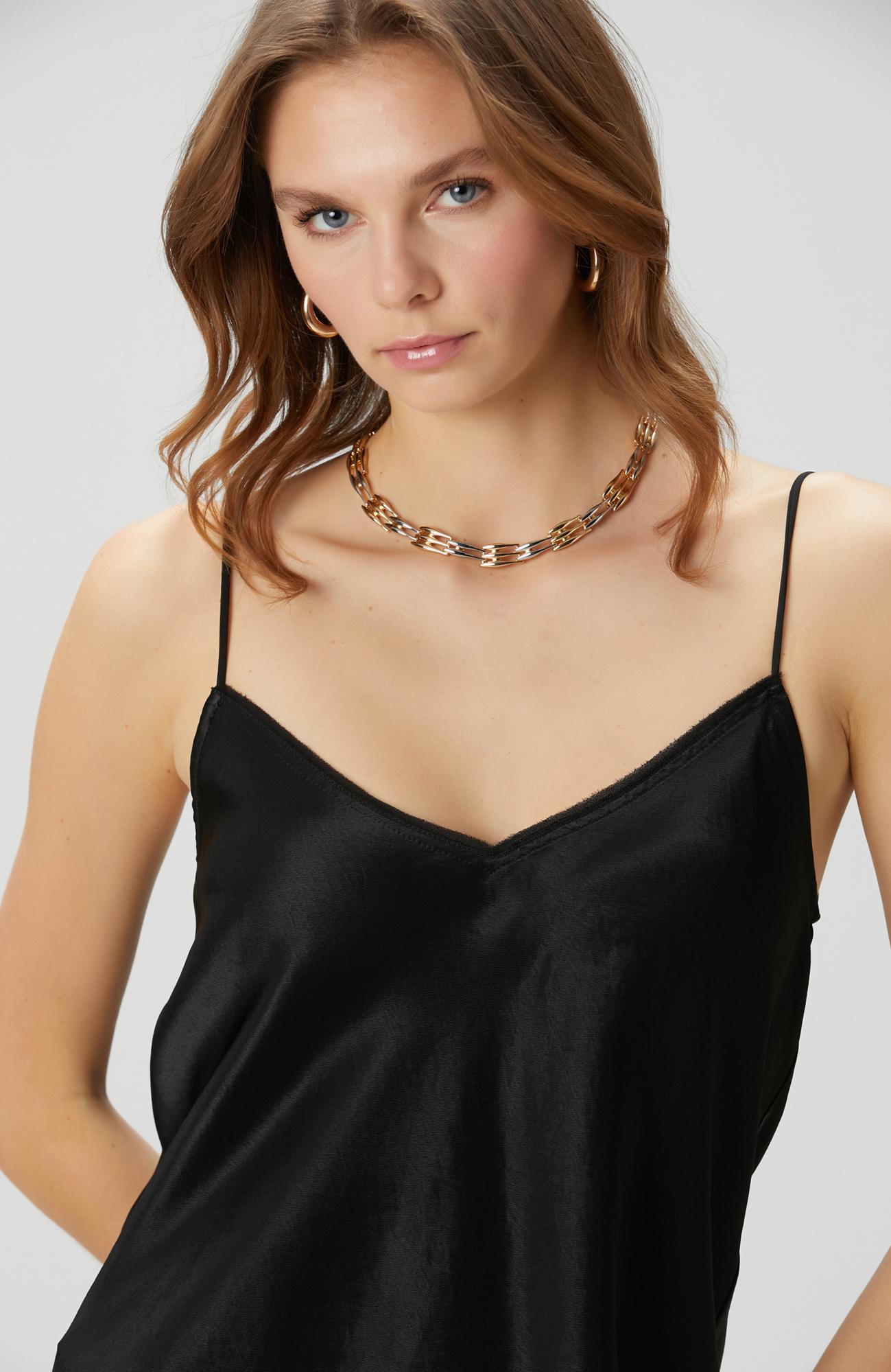 %100 Viscose;Regular Fit; V Yaka; Askılı Bluz;